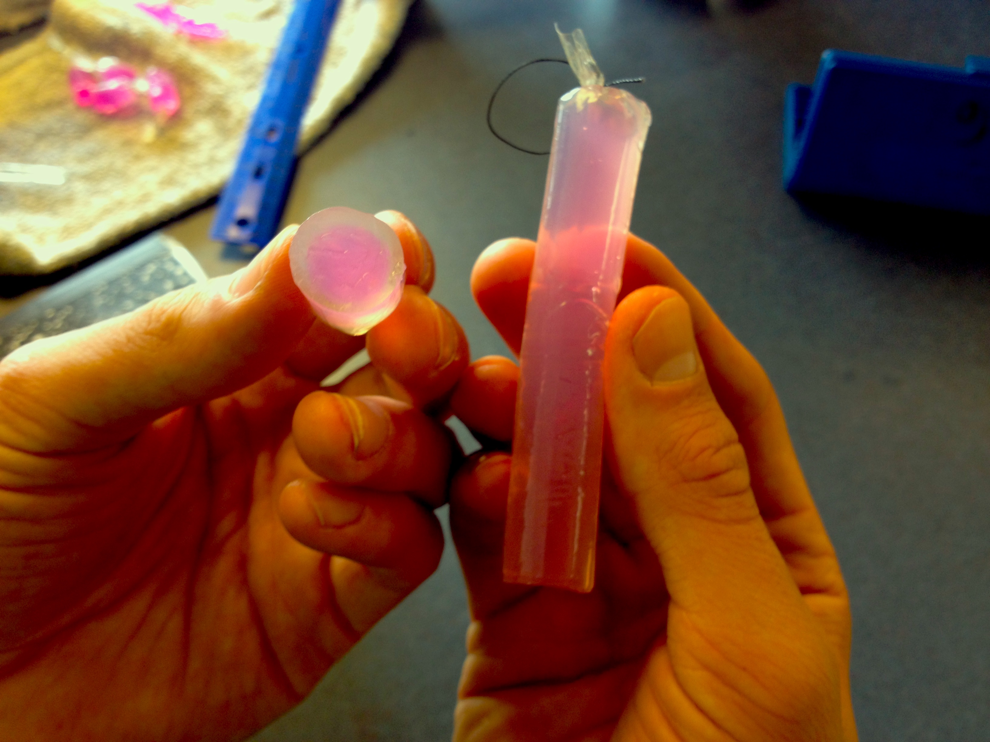 Students in Tim Dwyer's biology class build model oxygen diffusion in sea spider legs using agar infused with a pH indicator to explore the relationship between diffusion rates, surface area, and volume. Friday Harbor, Washington.