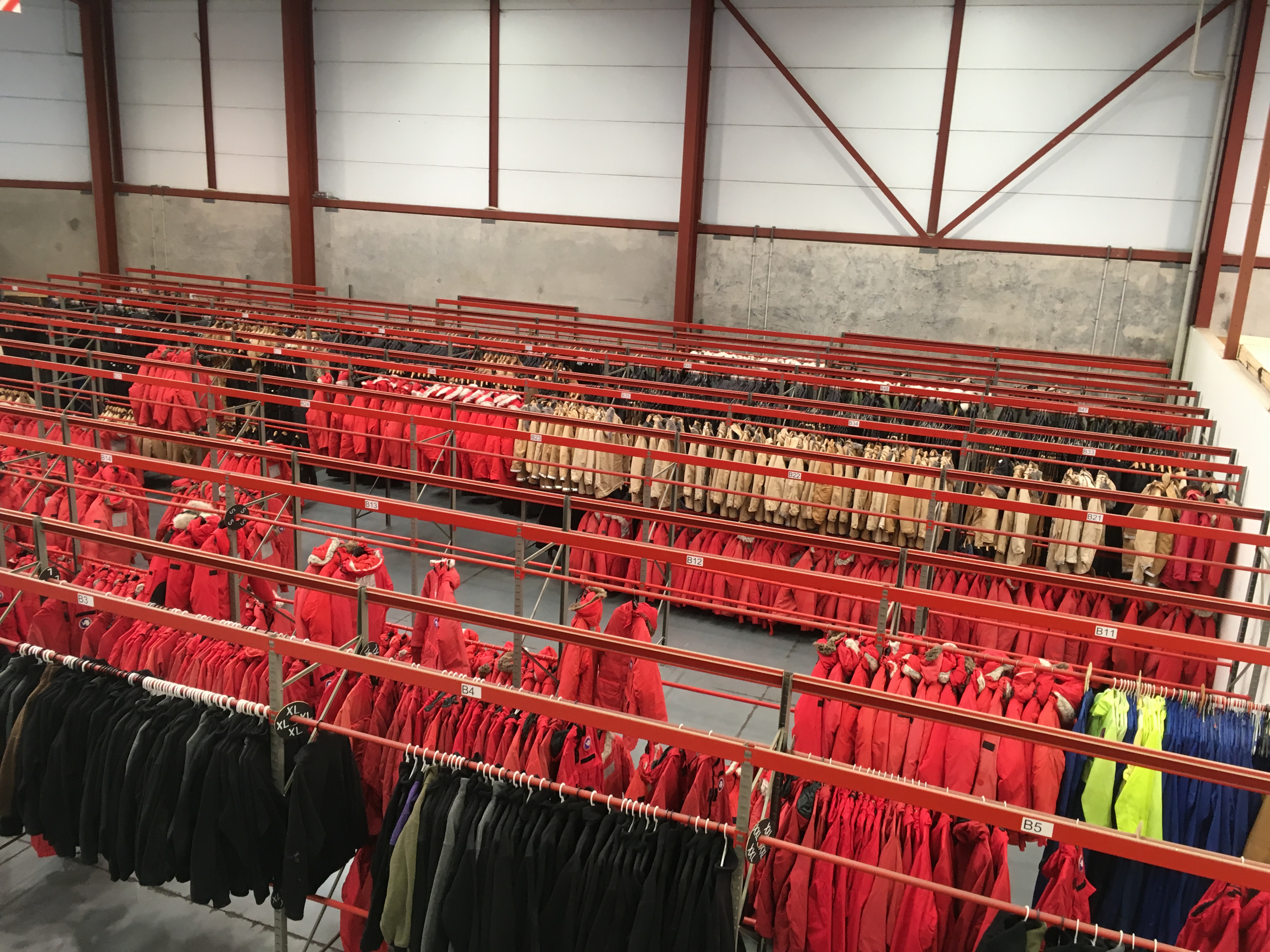 Assortment of "Big Red" jackets and other extreme cold weather (ECW) gear at the United States Antarctic Program's (USAP) Clothing Distribution Center in Christchurch, New Zealand.