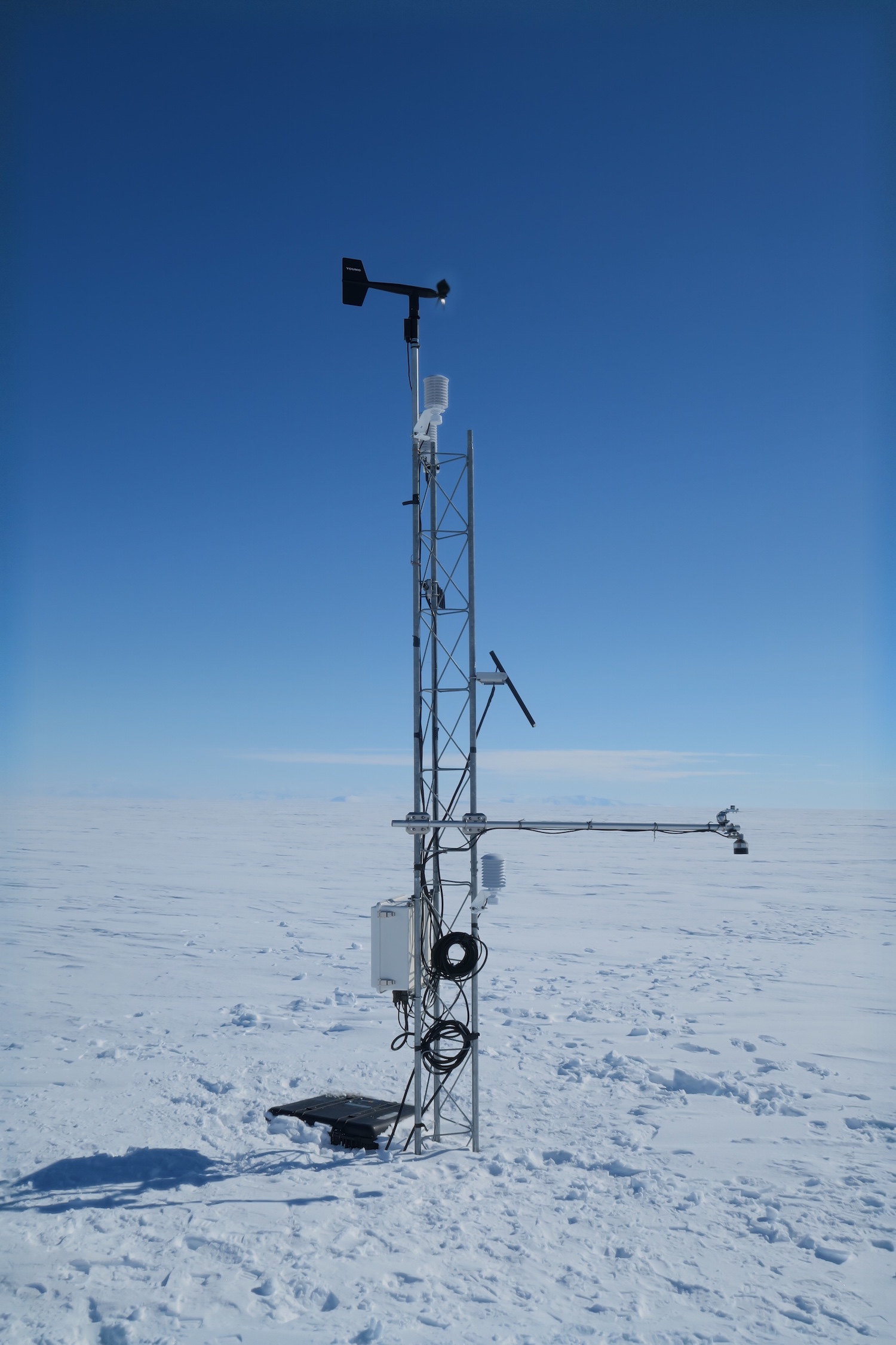 The Lorne Automatic Weather Station (AWS) after maintenance. Outside of McMurdo Station, Antarctica.