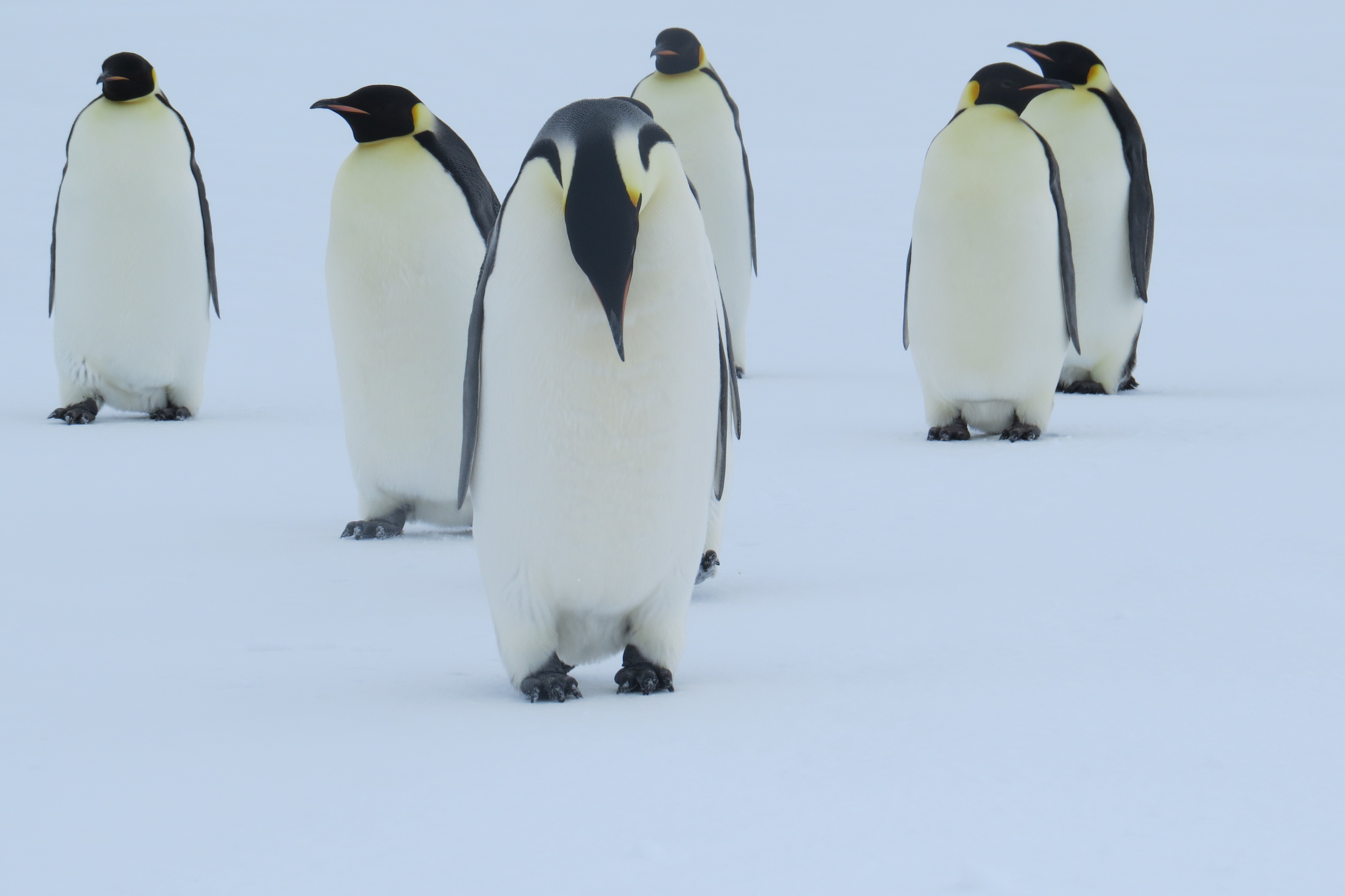 A group of Emperor penguins on the sea ice of the Ross Sea, Antarctica.