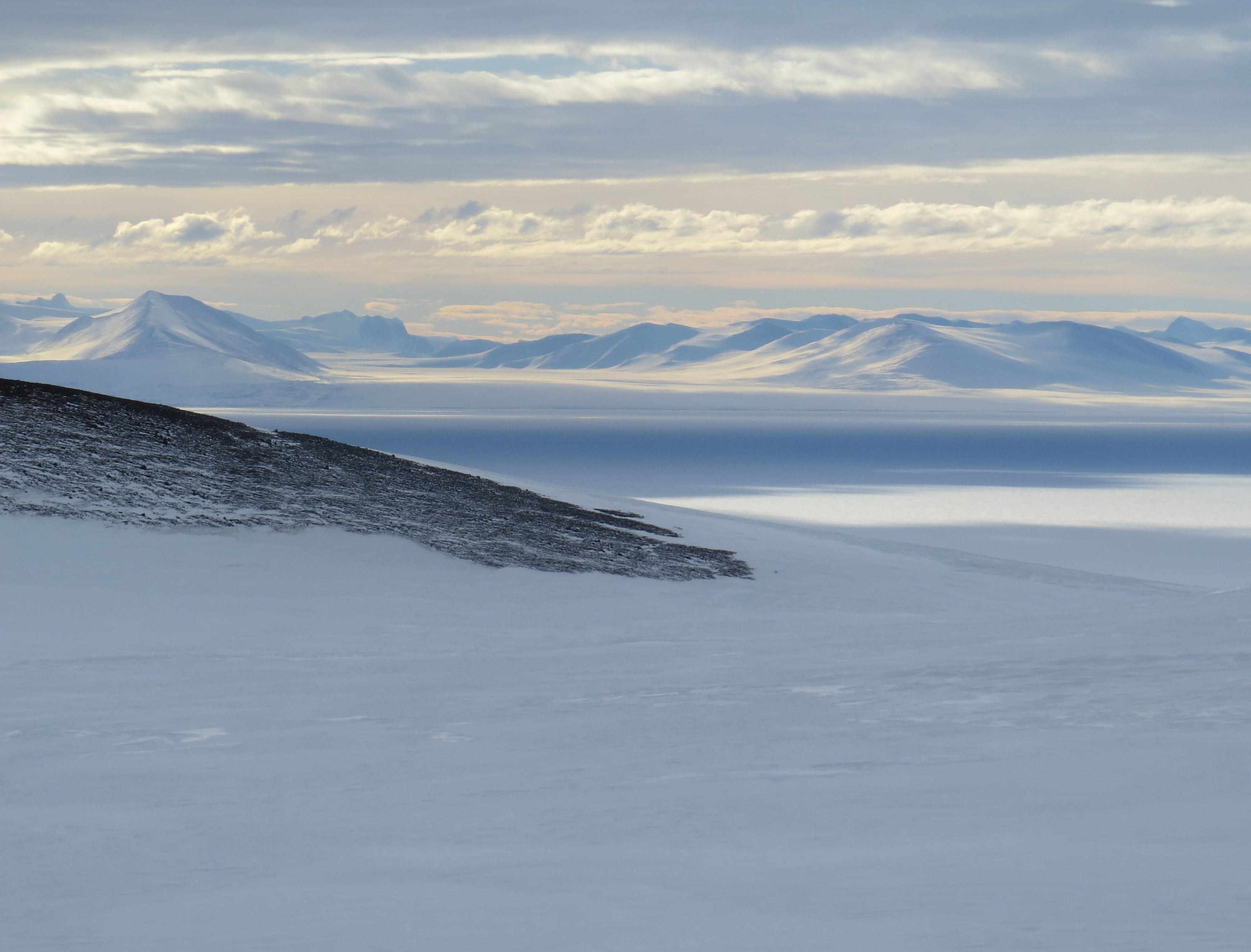 A view from the second emergency shelter at mile marker 2 on the Castle Rock Loop Trail, Ross Island, Antarctica.