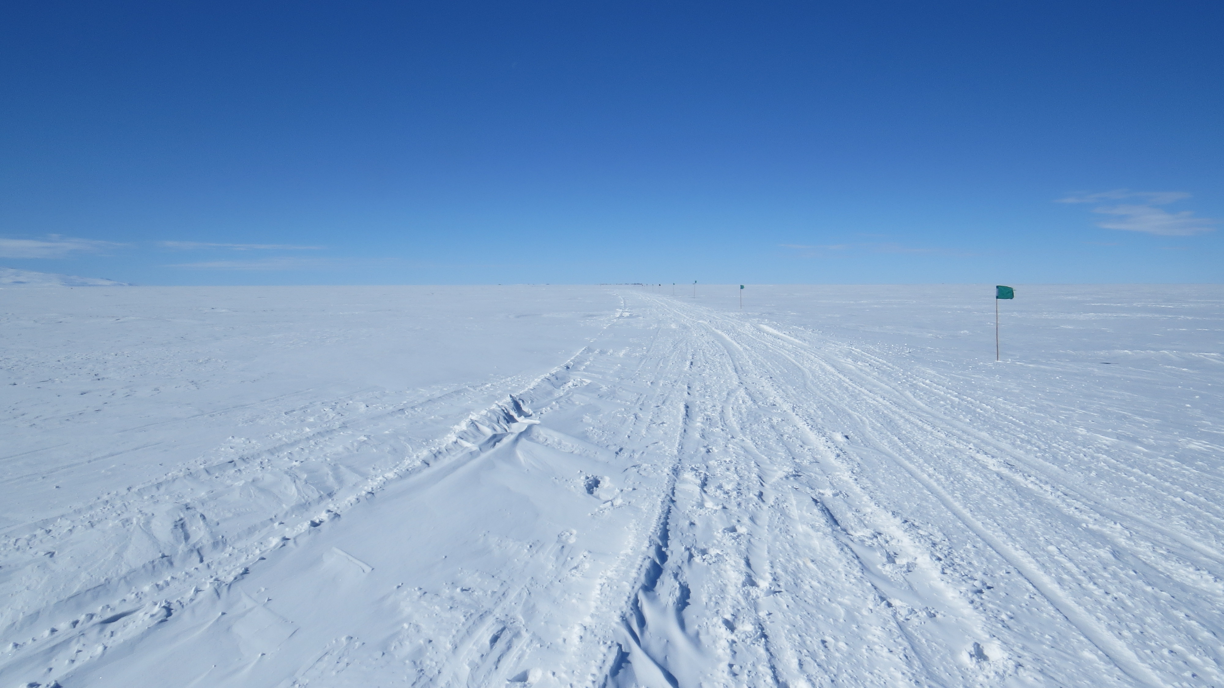 The Cape Armitage Loop Trail is a flat trail on the sea ice that goes from McMurdo Station to Scott Base, Antarctica.
