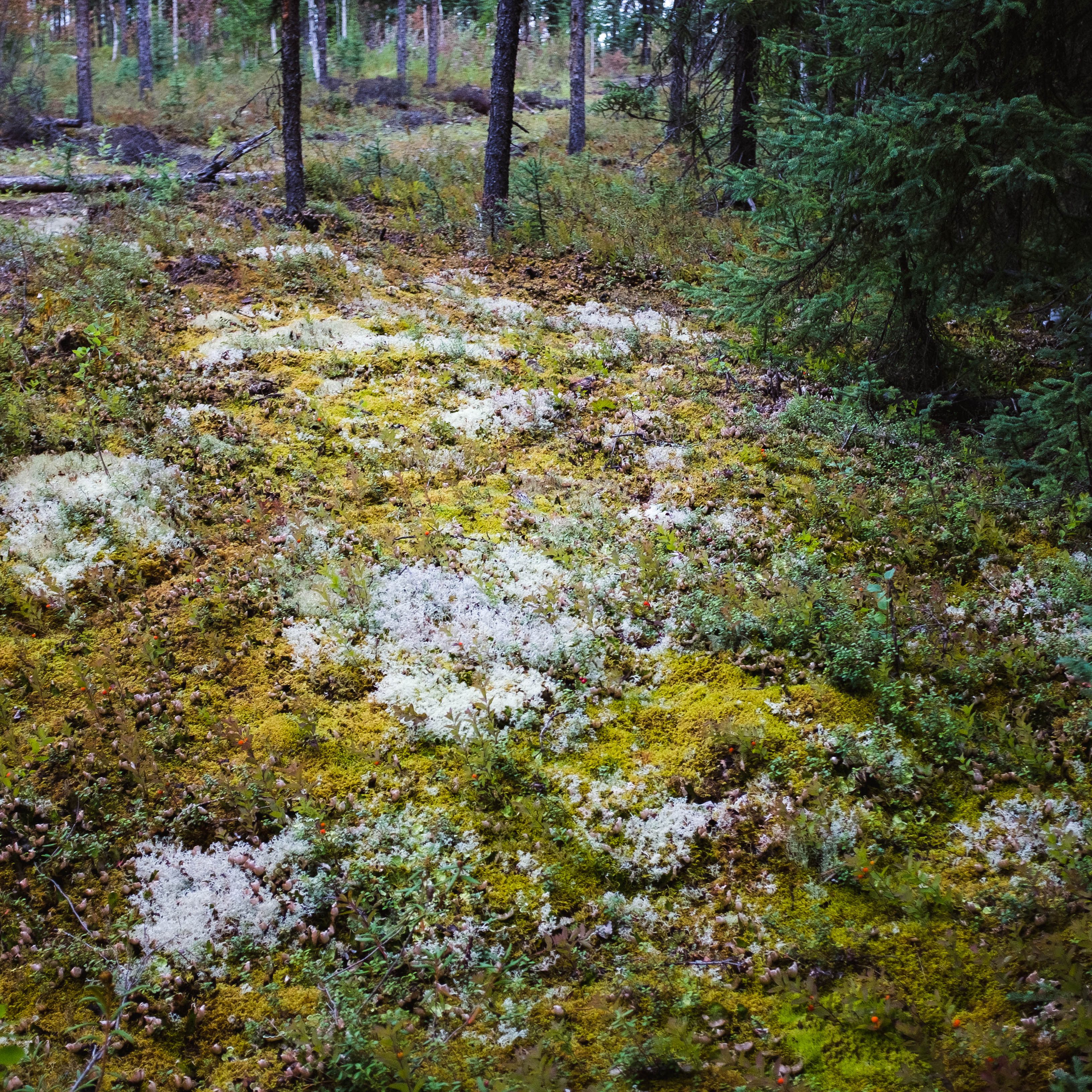 A view of mosses and other plants on the forest floor in Nikolai, Alaska.