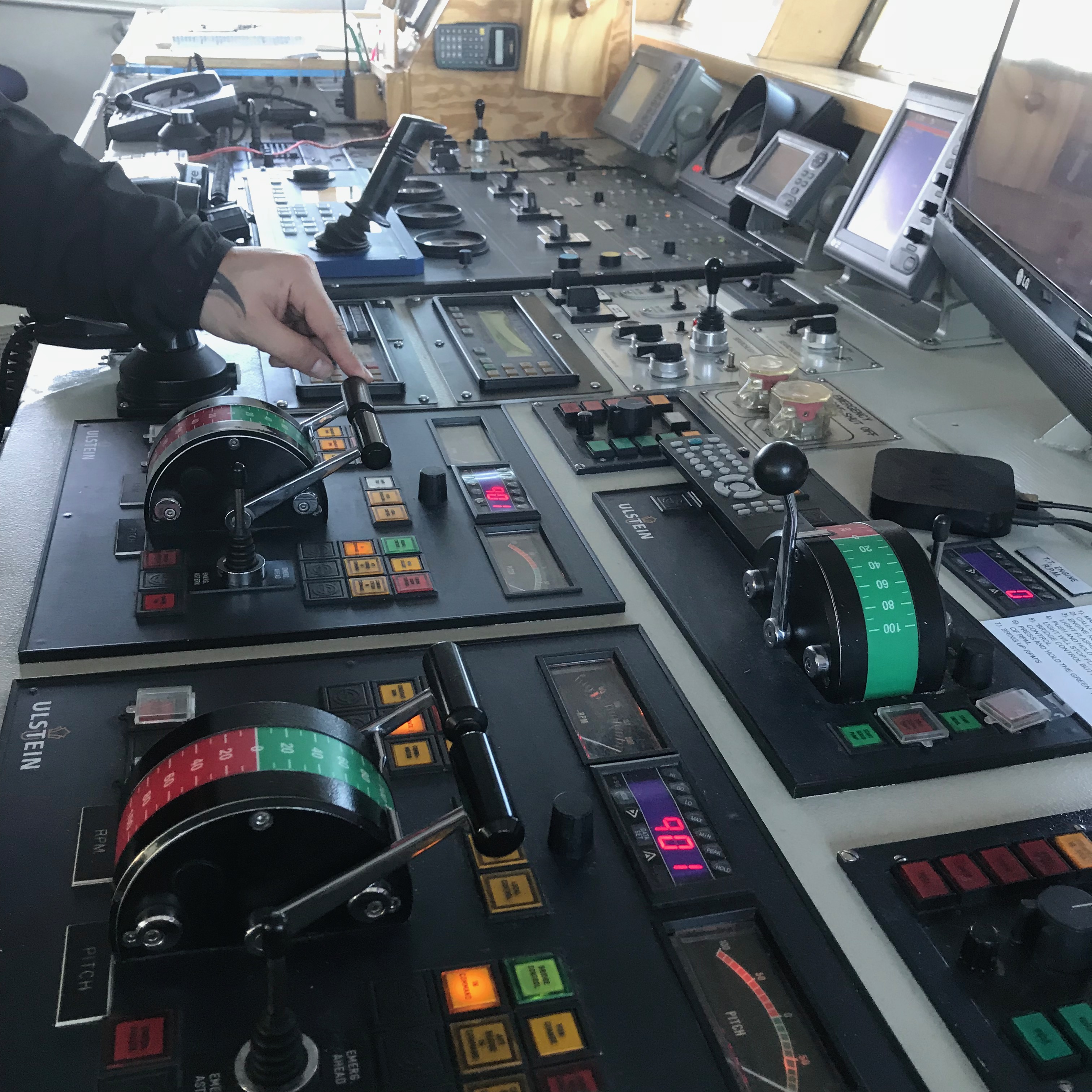 The instrument panel aboard the RV Laurence M. Gould in the Southern Ocean.