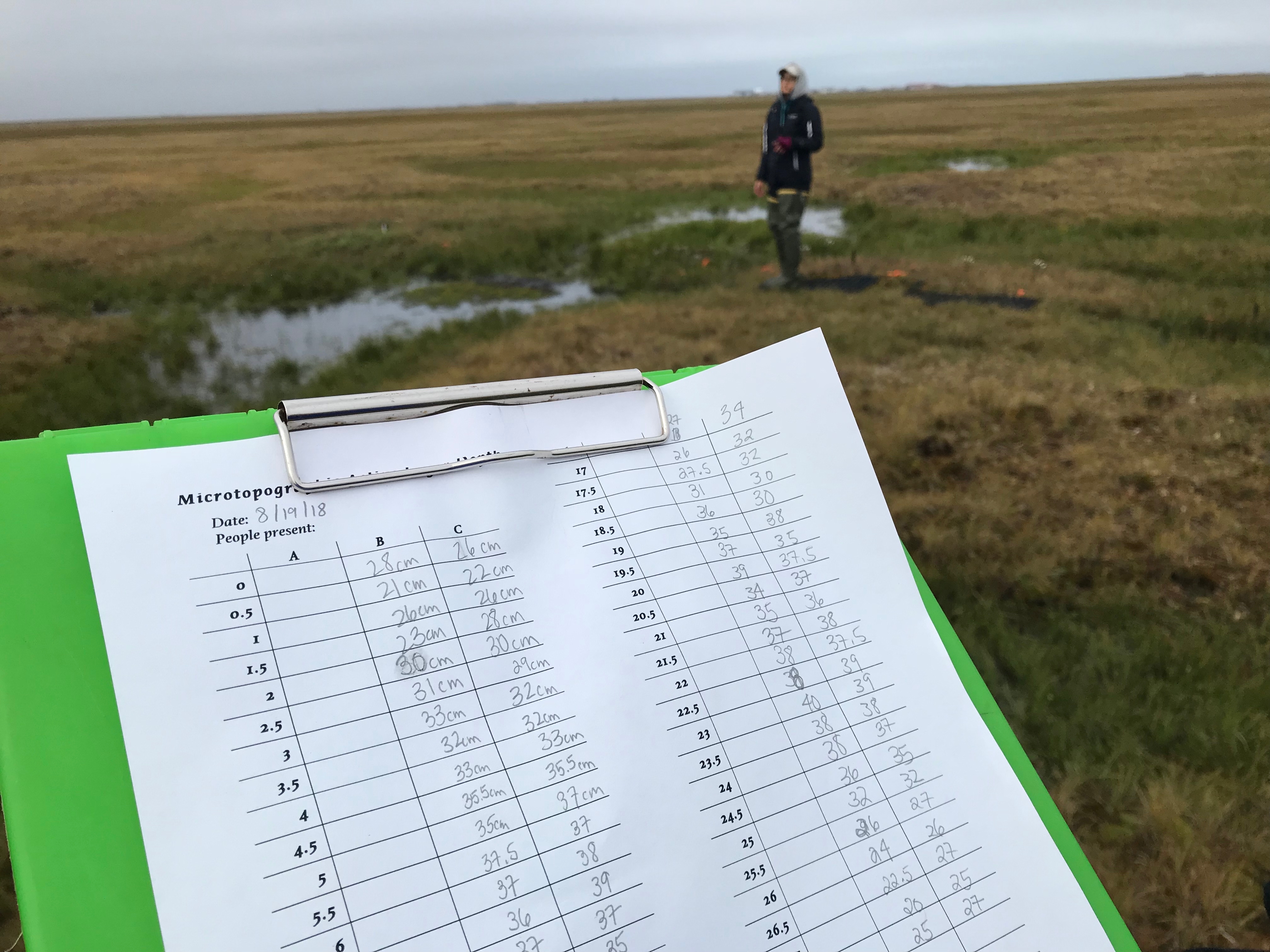 Kim Young records thaw depth measurements at the International Biological Program site, Utqiaġvik (Barrow), Alaska.