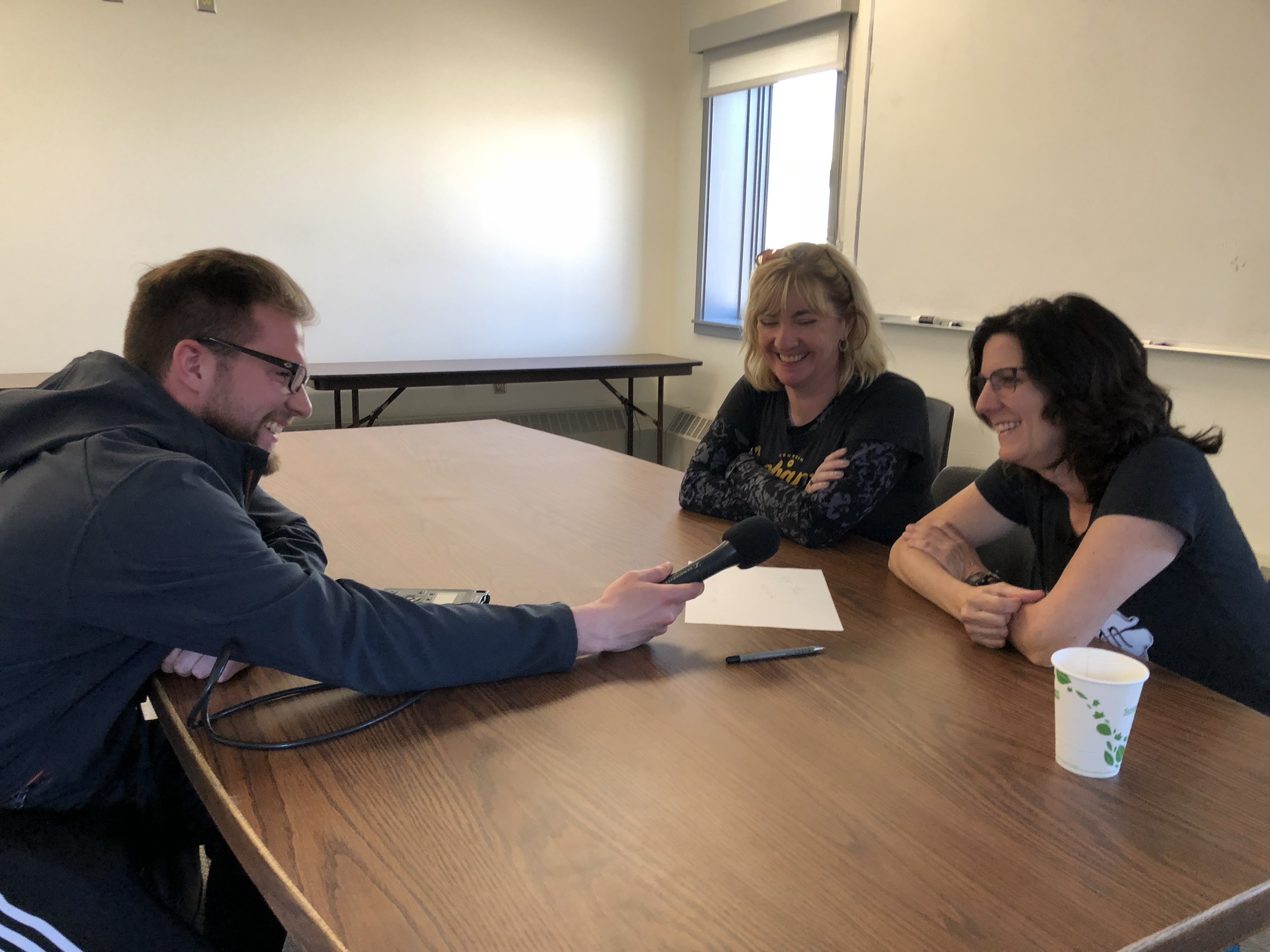 Mary Beth Decker and Joanna Chierici take part in a radio interview for Strait Science in Nome, Alaska.