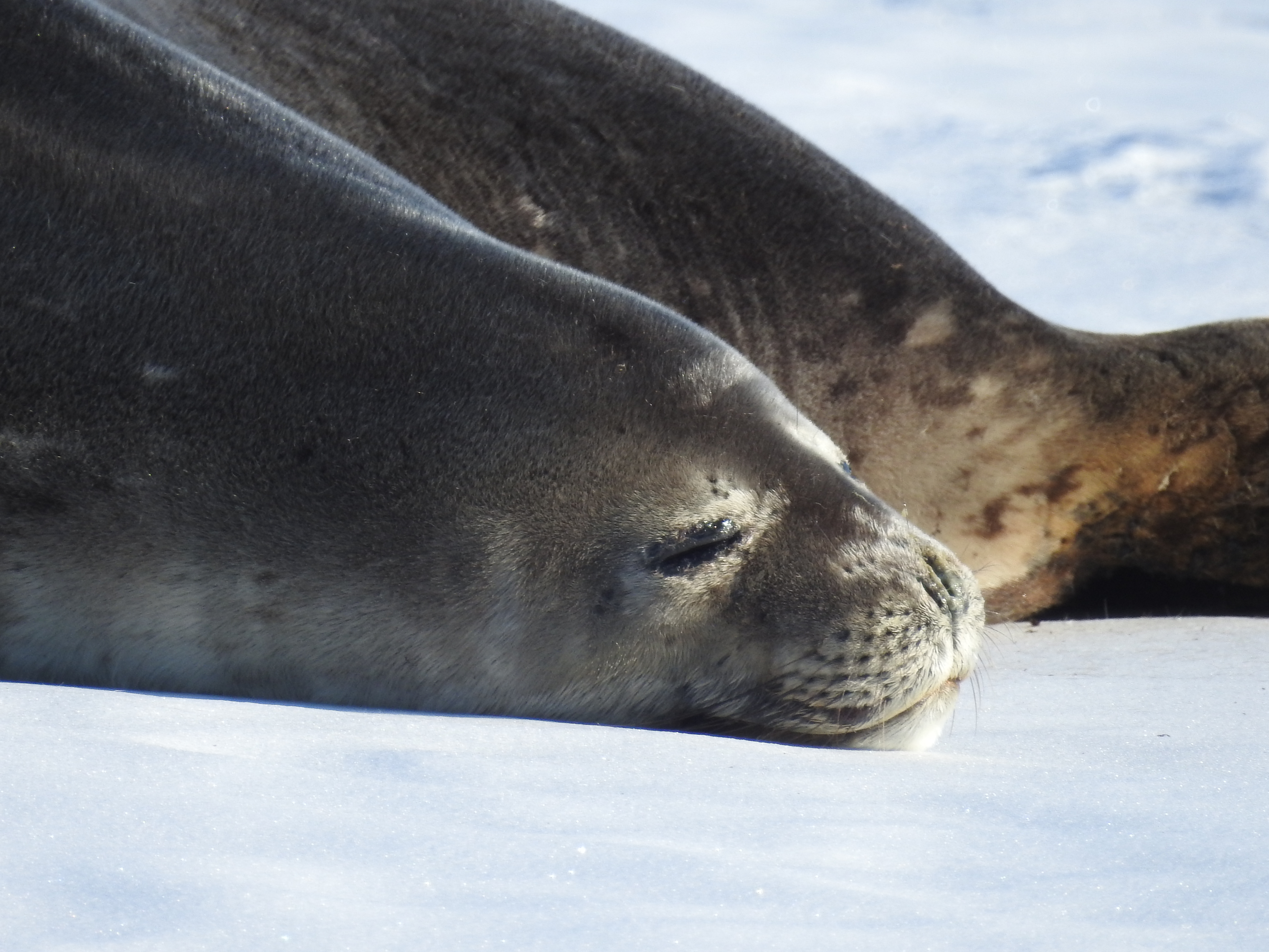 A Weddell seal takes a nap on the sea ice near Scott Base, Antarctica.