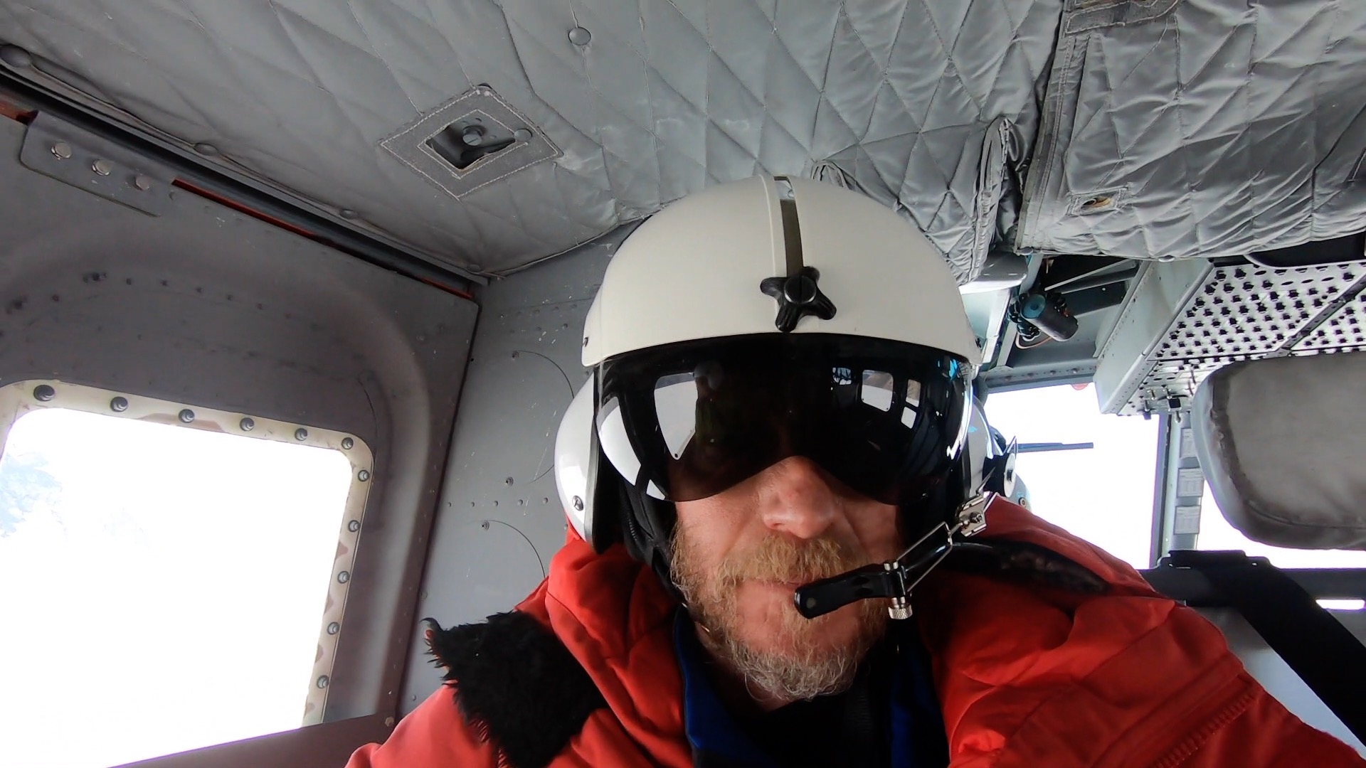 Kevin Dickerson flies in a Bell 212 helicopter en route to University Valley, McMurdo Dry Valleys, Antarctica.