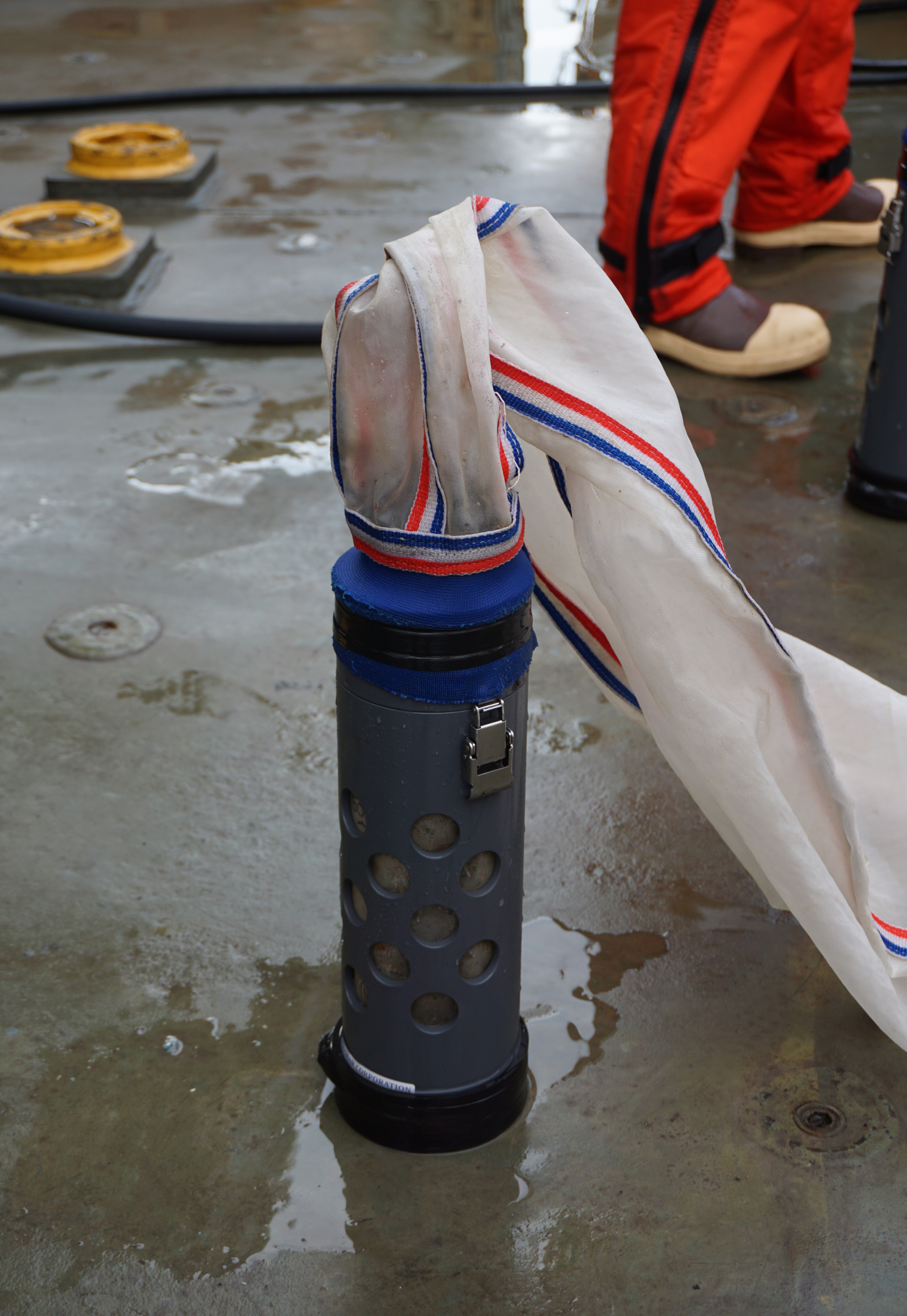 The caught end of the bongo net is where all the zooplankton enter before they are examined. Aboard the USCGC Healy icebreaker in the Bering Sea.