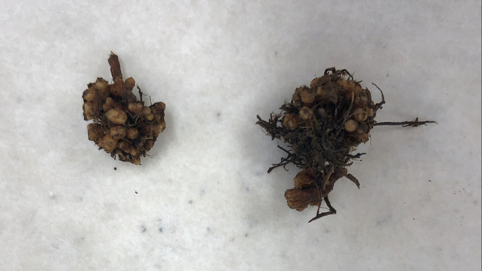 An alder nitrogen nodule removed from roots and soil for further analysis. Toolik Field Station, Alaska.