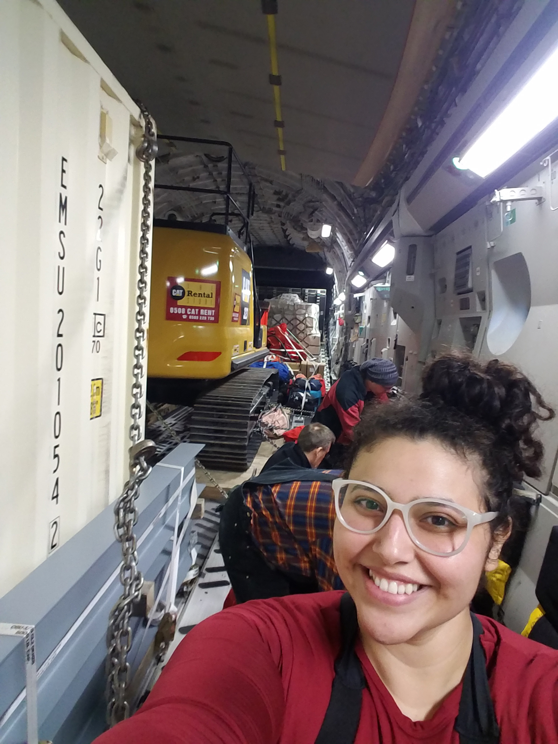 Jocelyn Argueta on the flight from Christichurch, New Zealand to McMurdo Station, Antarctica.