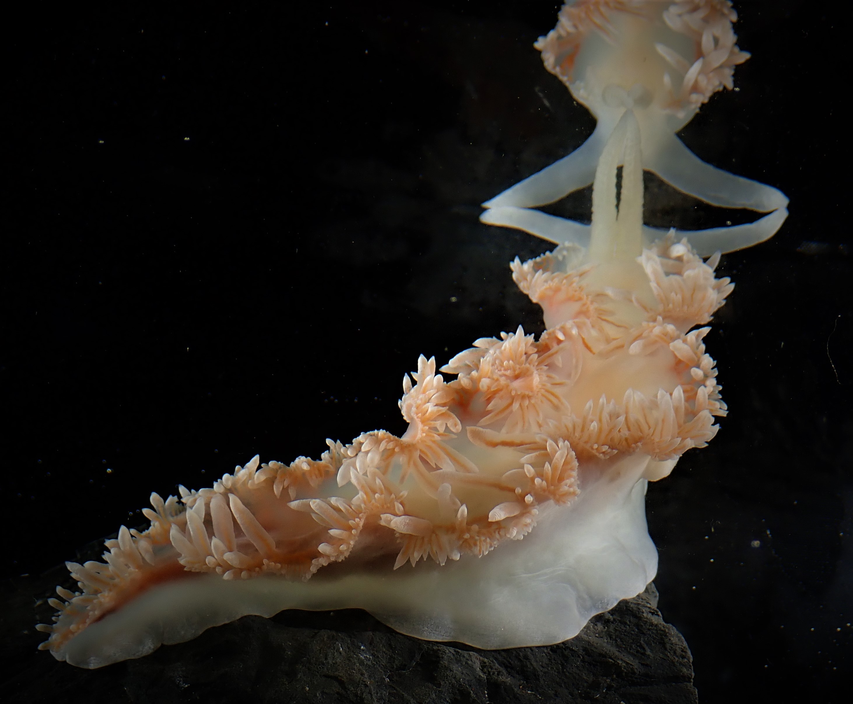 A nudibranch (Notaeolidia) looks at its reflection in the glass of a tank in the Crary Lab, McMurdo Station, Antarctica.