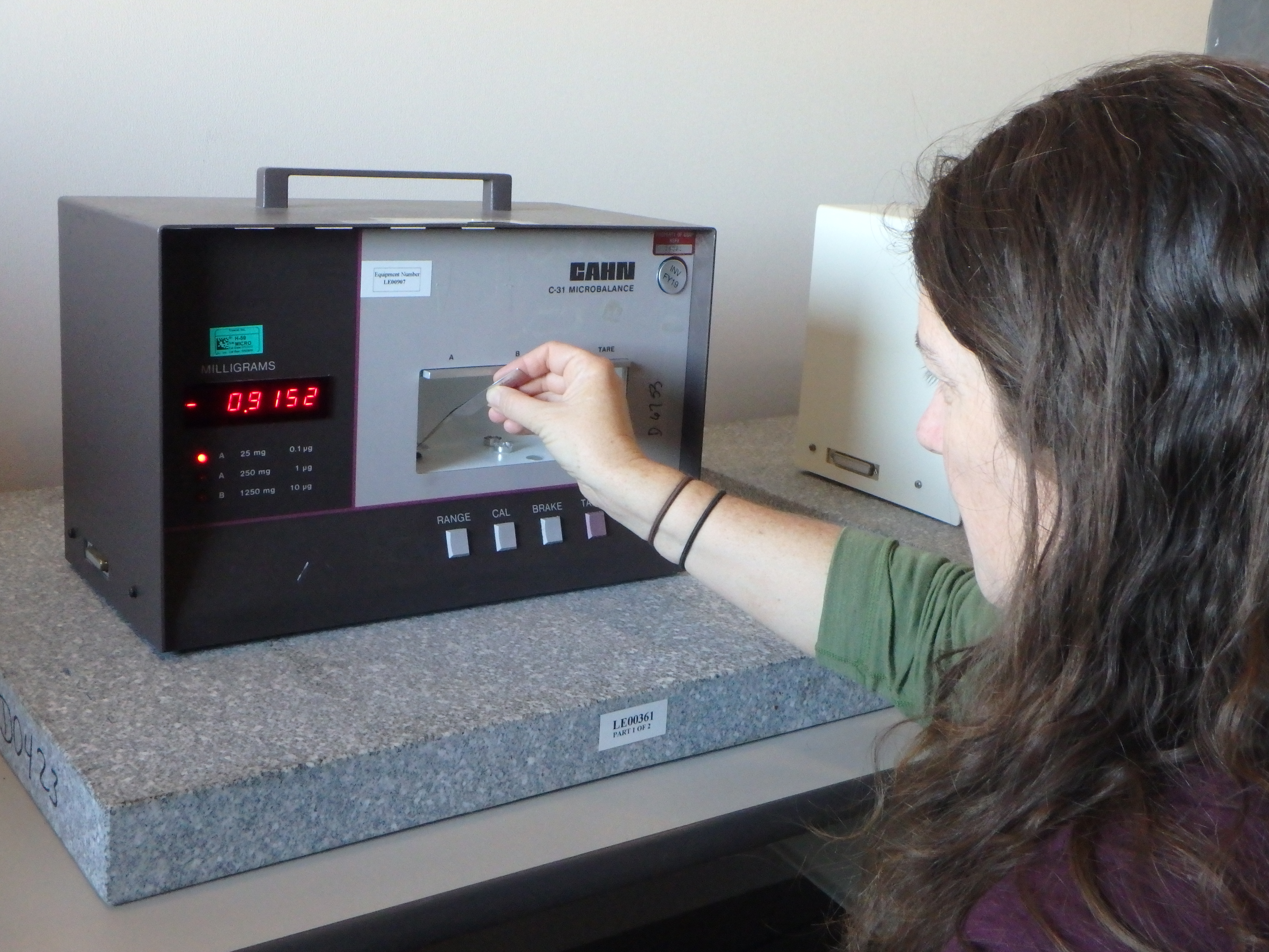 Amy Osborne uses a microbalance to determine the weight of the sea spider eggs. This is just one step to determine the ash free dry weight – which is how much the organic contents weighs. Crary Lab, McMurdo Station, Antarctica.