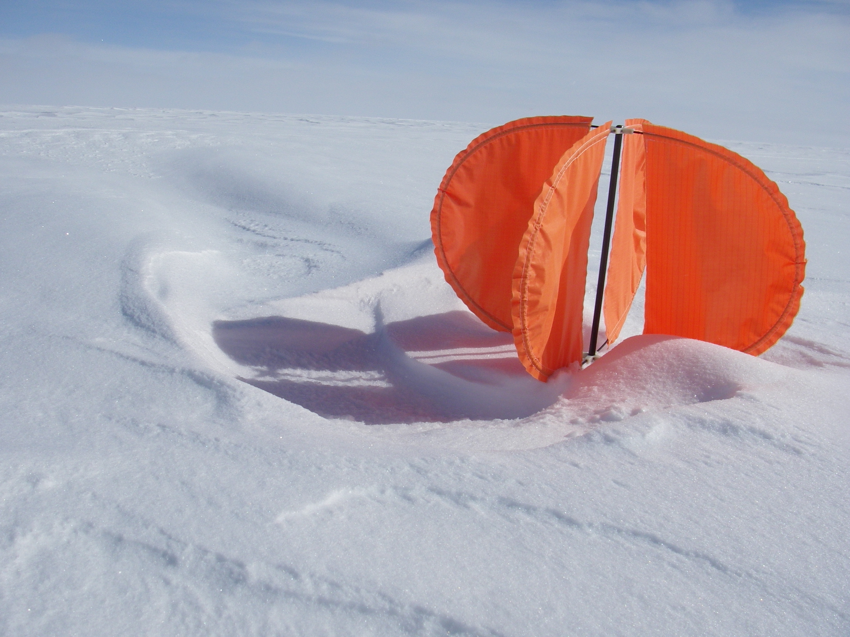 The tail section of the tethersonde ended up half a mile away from the balloon after it fell off mid-flight. Thankfully we were able to recover it. Near Summit Camp, Greenland.