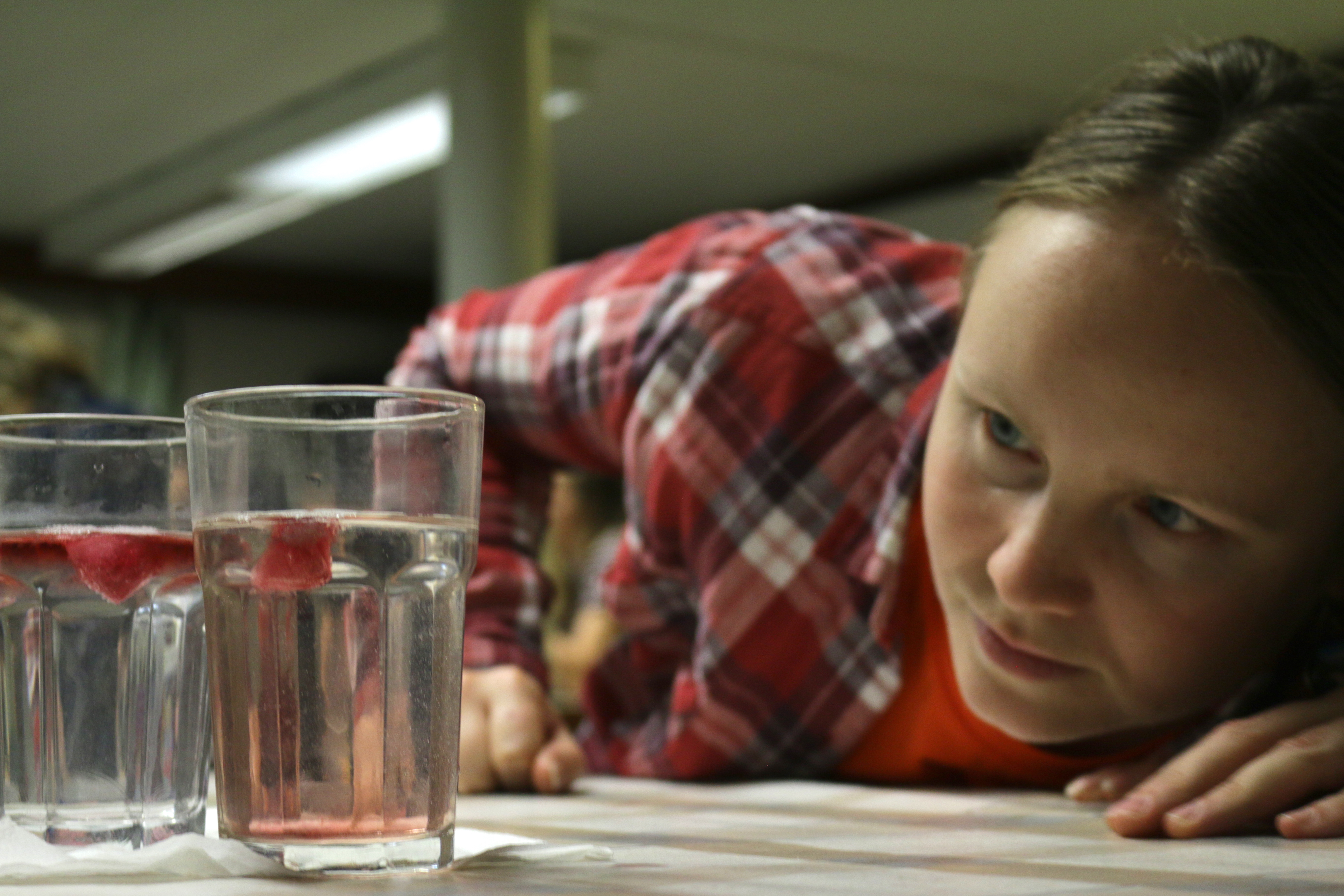 Katie Gavenus: "Tatiana Matveeva, a graduate student in the MOSAiC School, looks closely at a demonstration of a simple lab experiment about sea ice that can be done with K-12 students." Aboard the R/V Akademik Fedorov in the Central Arctic Ocean.