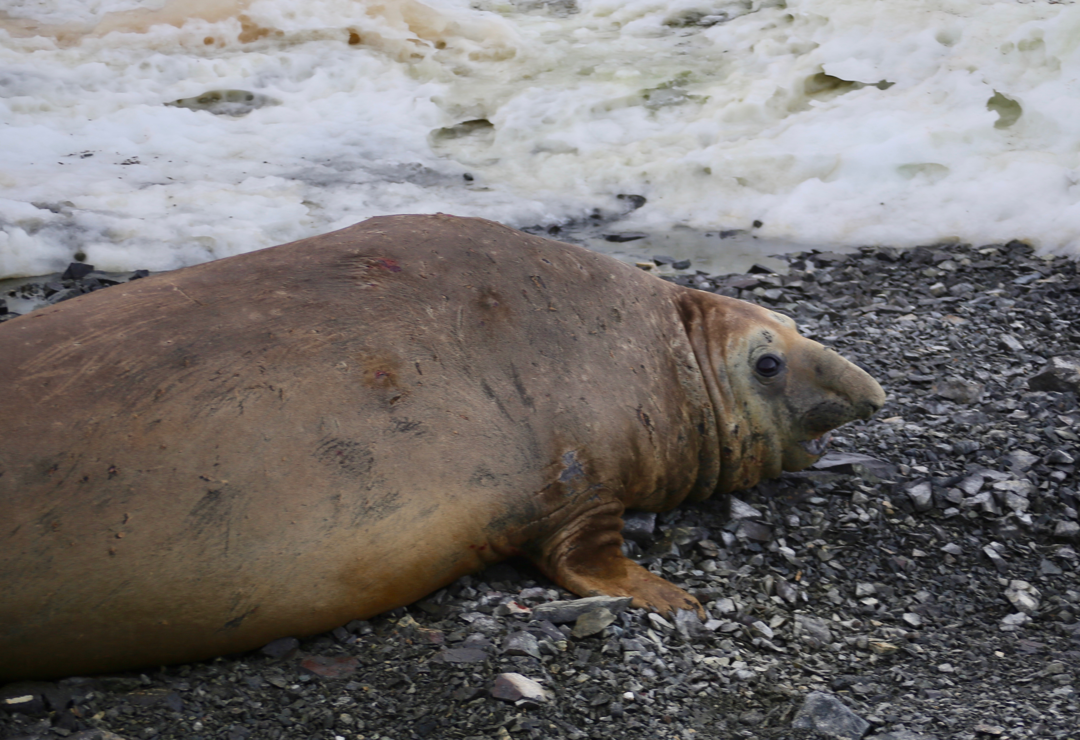 Elephant seals spend a few weeks on land, molting their old coat and growing a new one. Edwards Islands #4, Amundsen Sea, Antarctica.