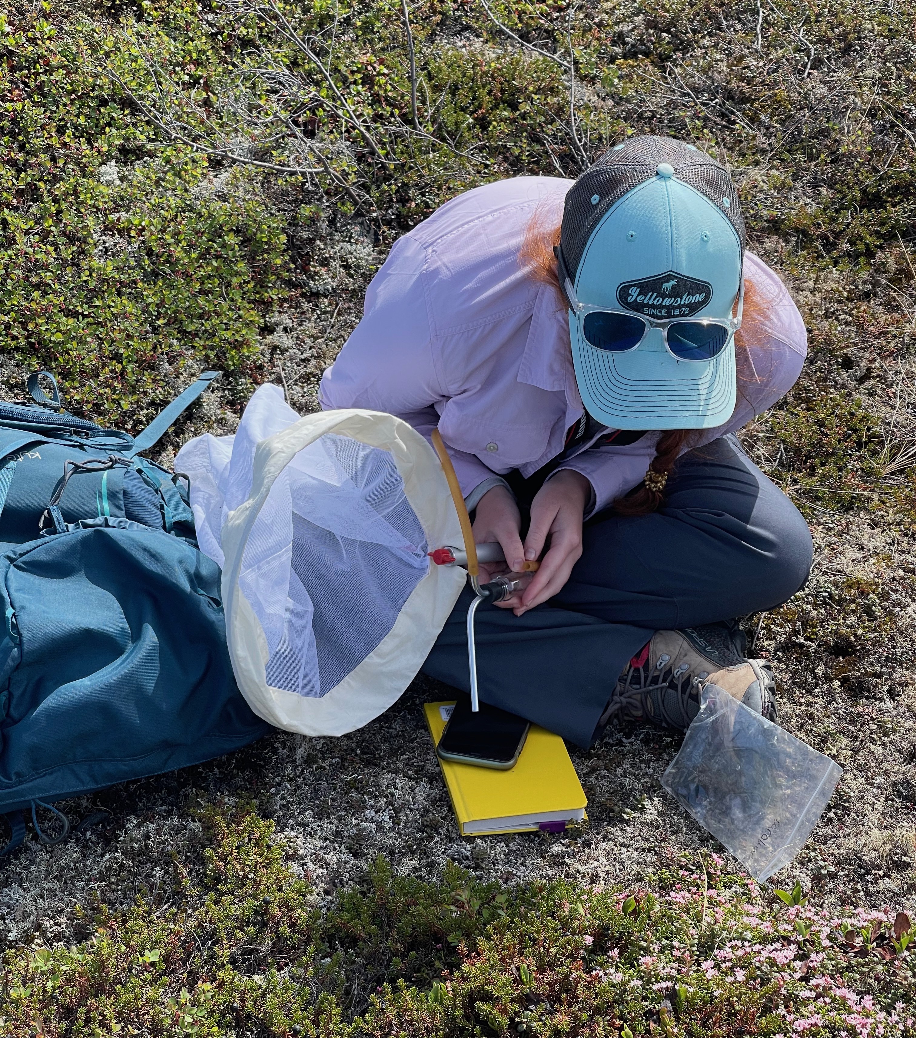 Caroline Brosey waits patiently to collect a pollinator. International Tundra Experiment Arctic Observatory Network (ITEX-AON) plots at Toolik Field Station, Alaska.