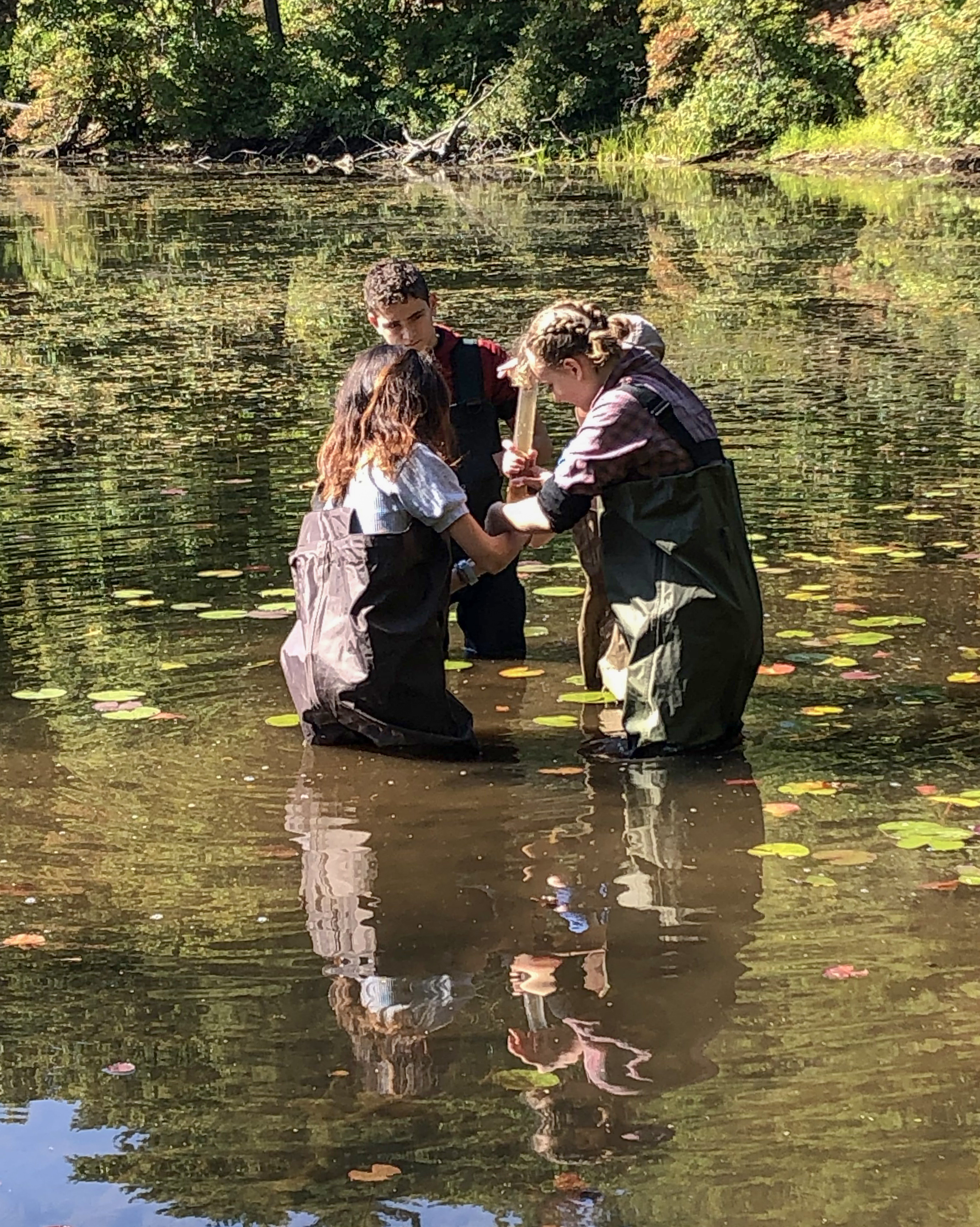 Some of Mark Goldner’s students try their hand at sediment coring at a pond in Milton, Massachusetts, practicing a similar technique Mark learned in Svalbard in 2011. Hillside Pond, Milton, Massachusetts.