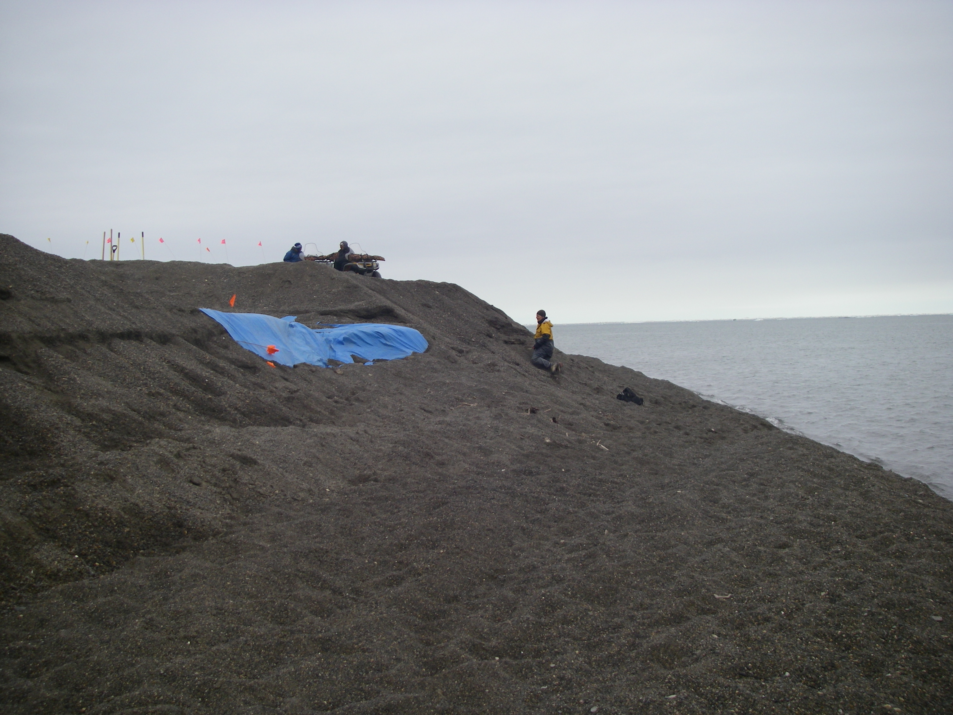 Frank Kelley says, "this is the area we worked in today. Lots of gravel moving. Seven people moved a couple of ton of gravel and then four of us kept working on it for the rest of the day." Barrow, Alaska.