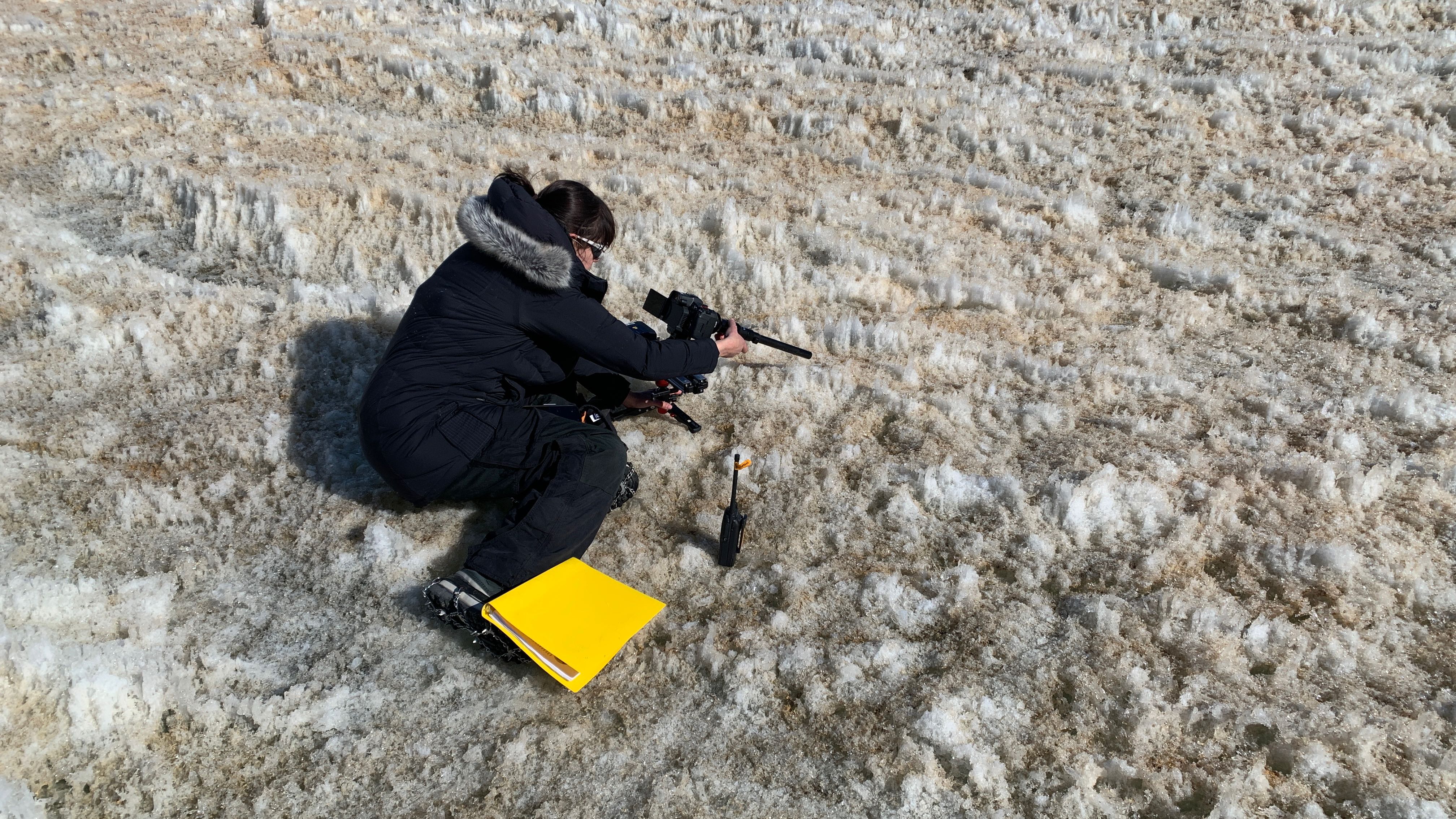 Ariel Waldman documents the sediments blown out from melt ice near Blood Falls. Lake Bonney, Taylor Valley, Antarctica.