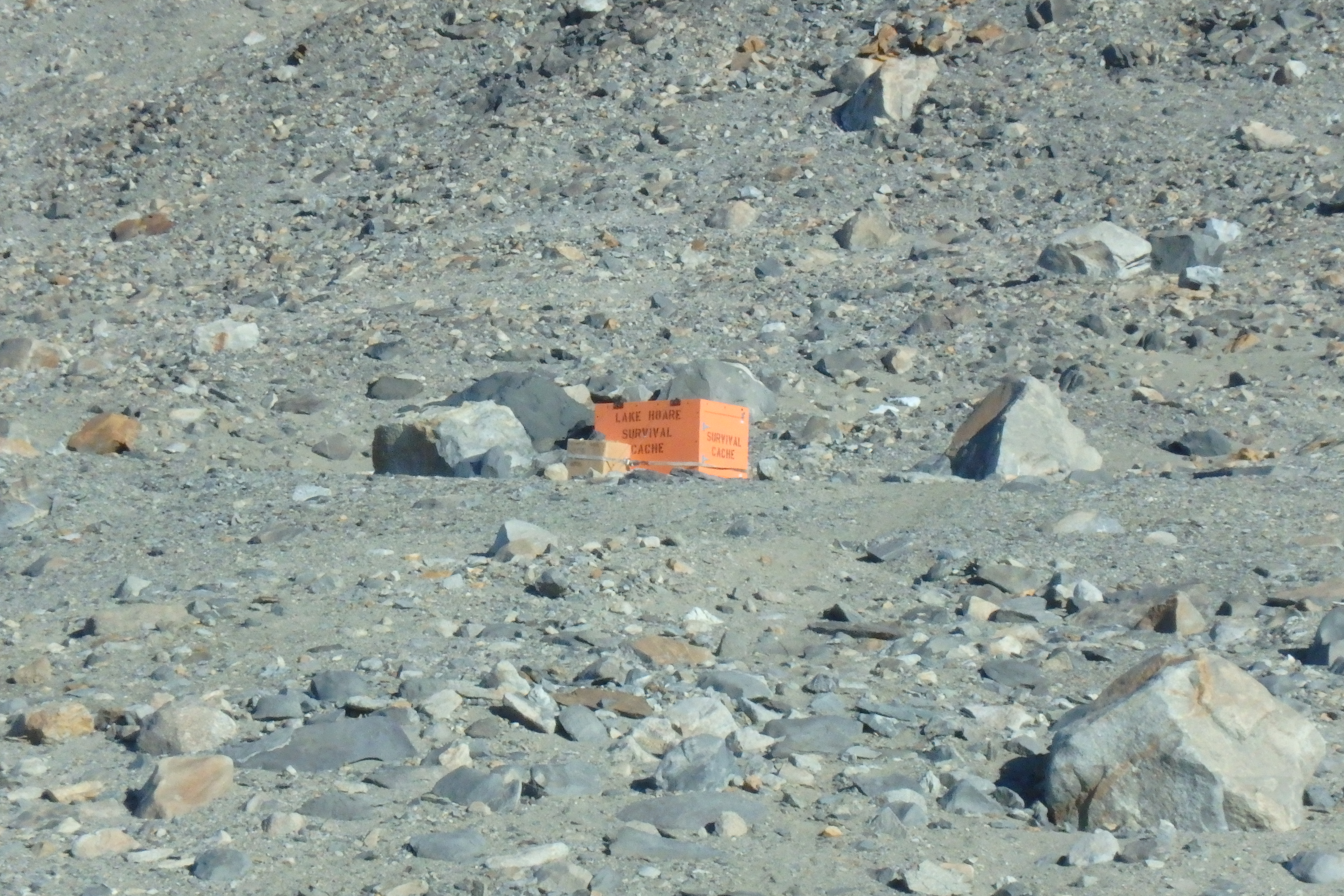 Wherever scientists or support staff are left in the Dry Valleys, they have the extra support of a supply cache. These caches have tents, food, sleeping gear, and extra clothing. Lake Hoare, Taylor Valley, Antarctica.