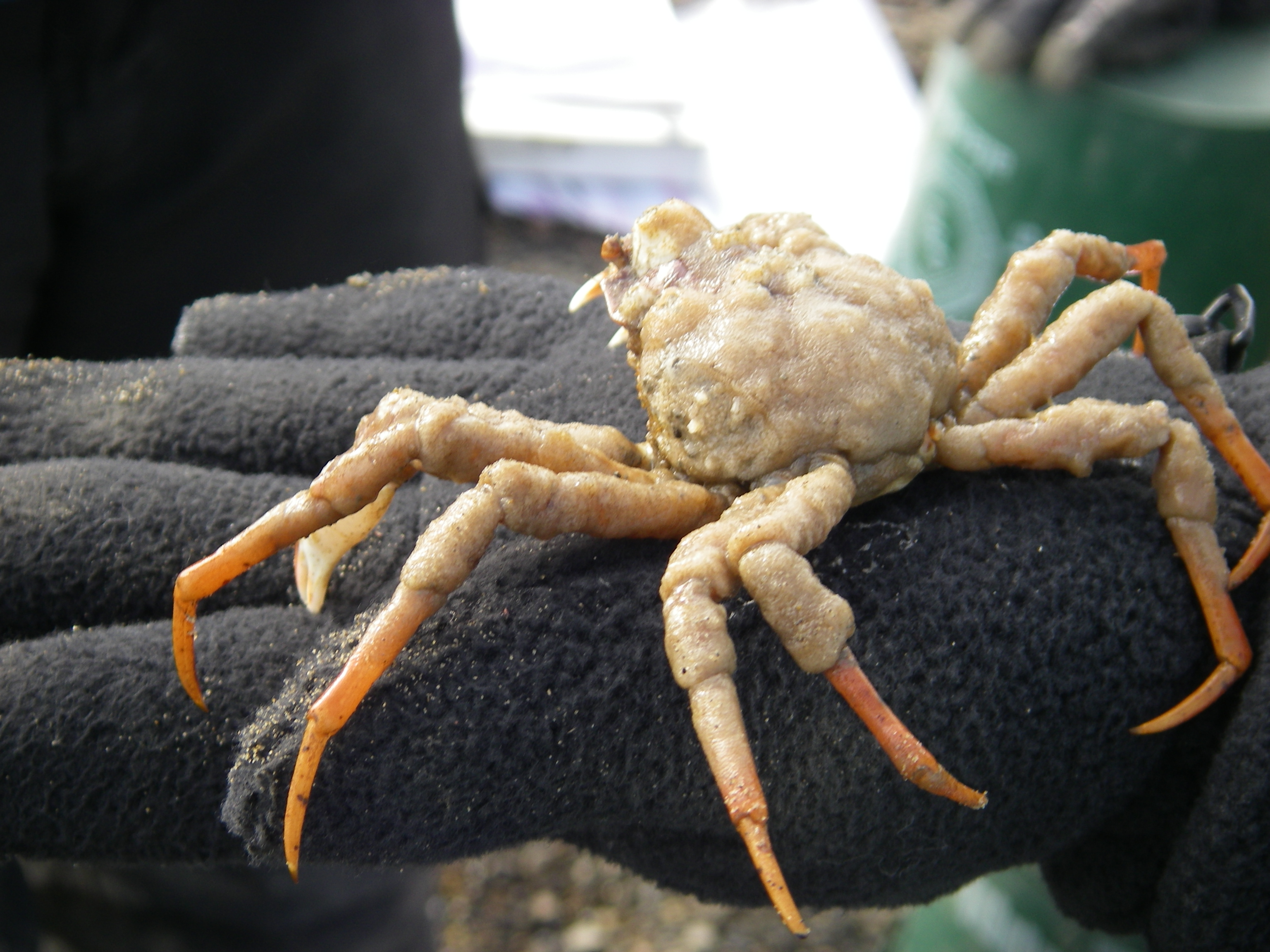 Frank Kelley says, "the kids grabbed this crab out of the water and brought it up to say hi. They thought it was dead, then it tried to escape, they screamed, and we all laughed. Well, maybe not the crab. The crab did get placed back in the water safely." Barrow, Alaska.
