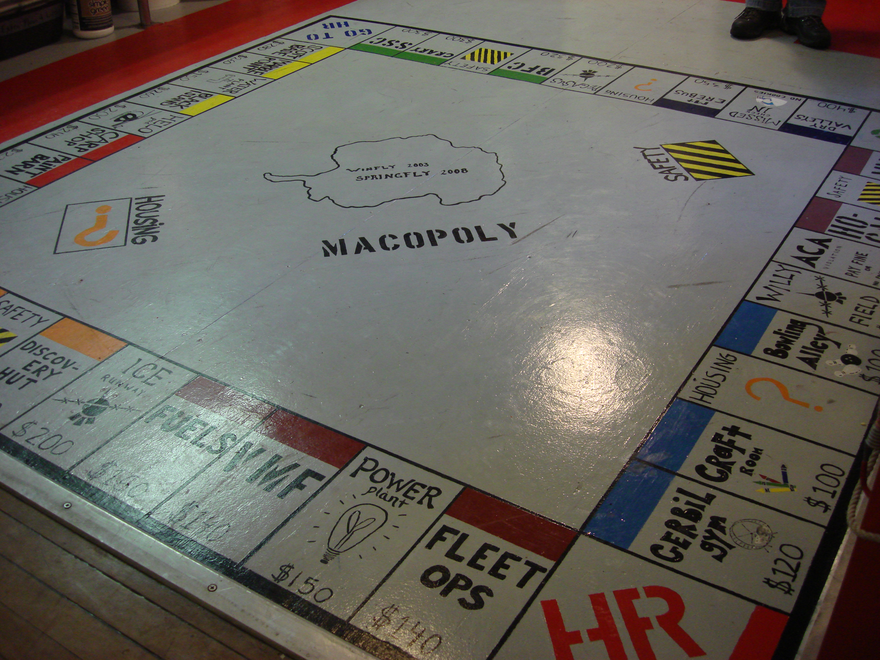 The "Macopoly" board for the homemade McMurdo Station version of Monopoly. McMurdo Station, Antarctica.
