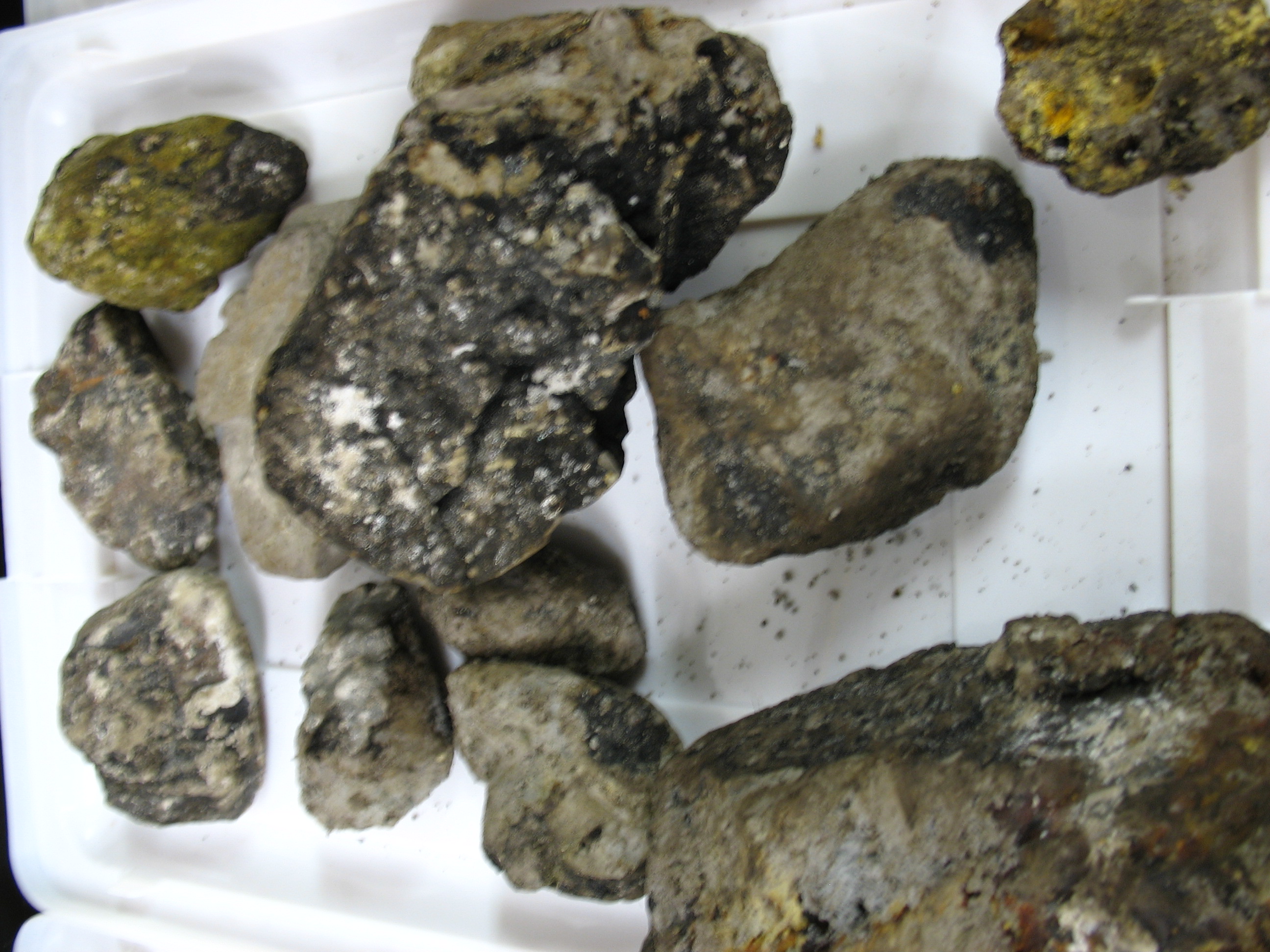 Ash clay rocks that were collected in the rock dredge. Aboard the Nathaniel B. Palmer in the Drake Passage in the South Atlantic Ocean.