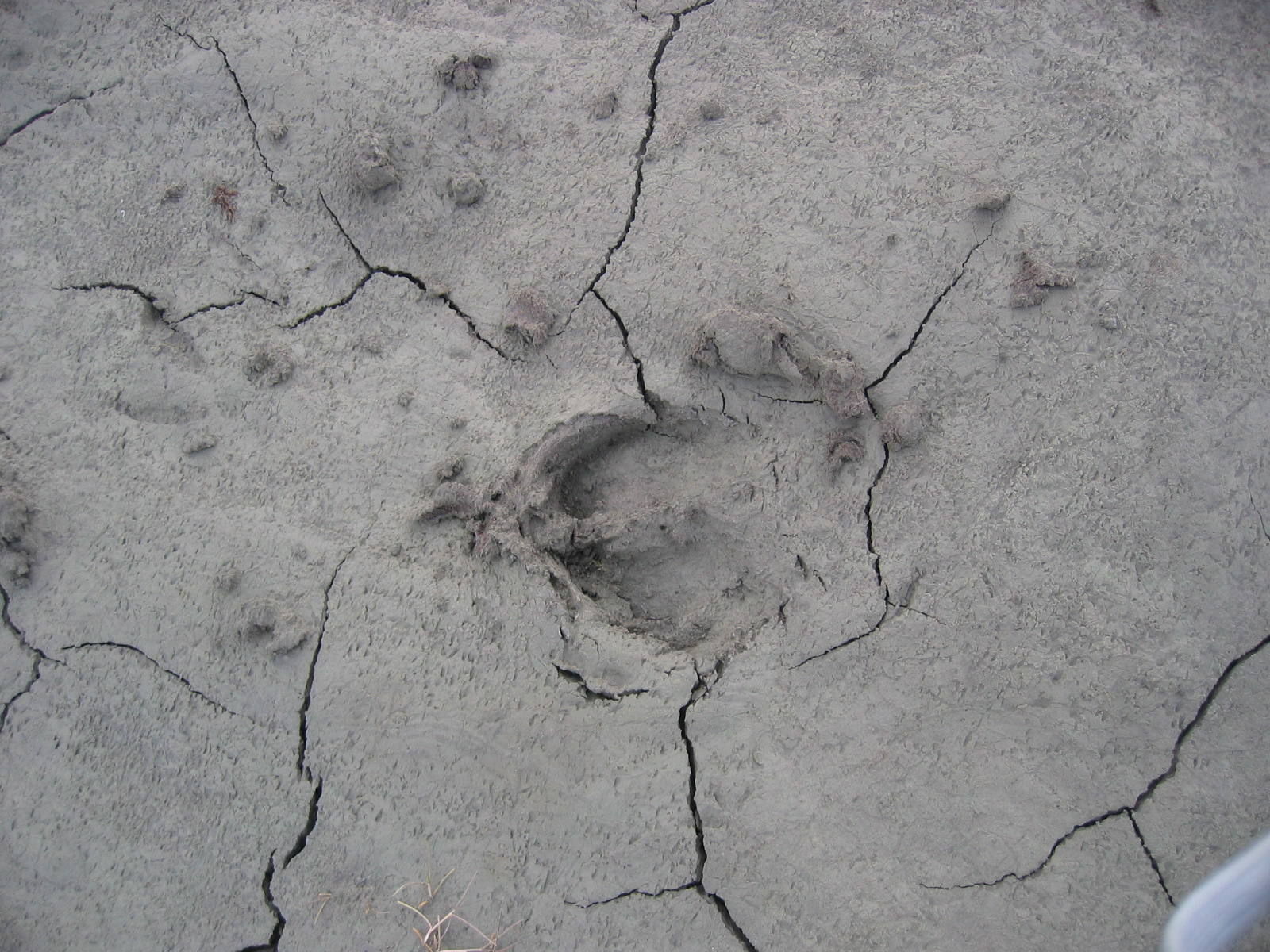 A caribou footprint seen in the mudd of the Ikpikpuk Delta, near Barrow, Alaska.