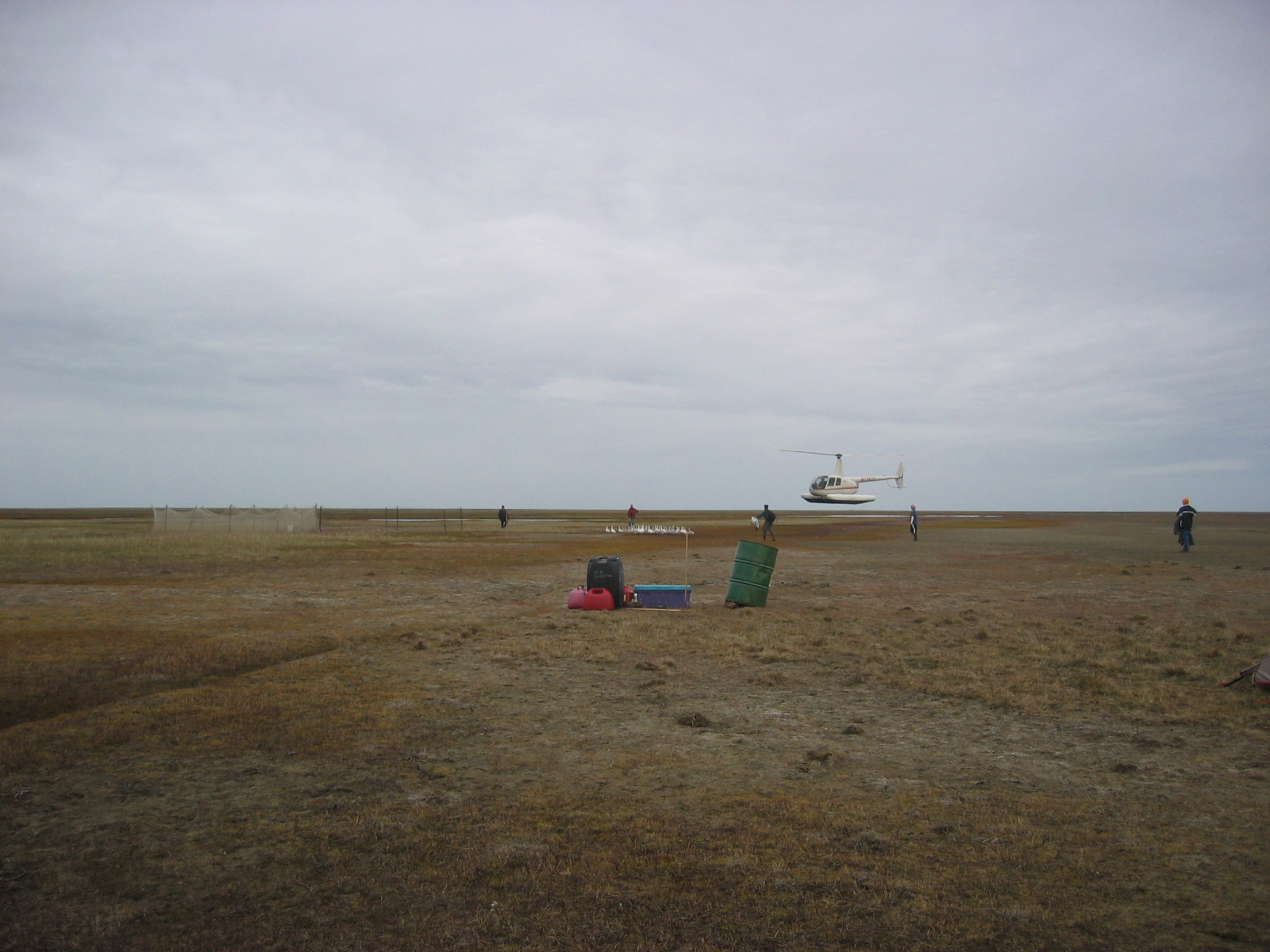 A view of the banding site (with the helicopter) set up to band snow geese (*Chen caerulescens*) near Barrow, Alaska.