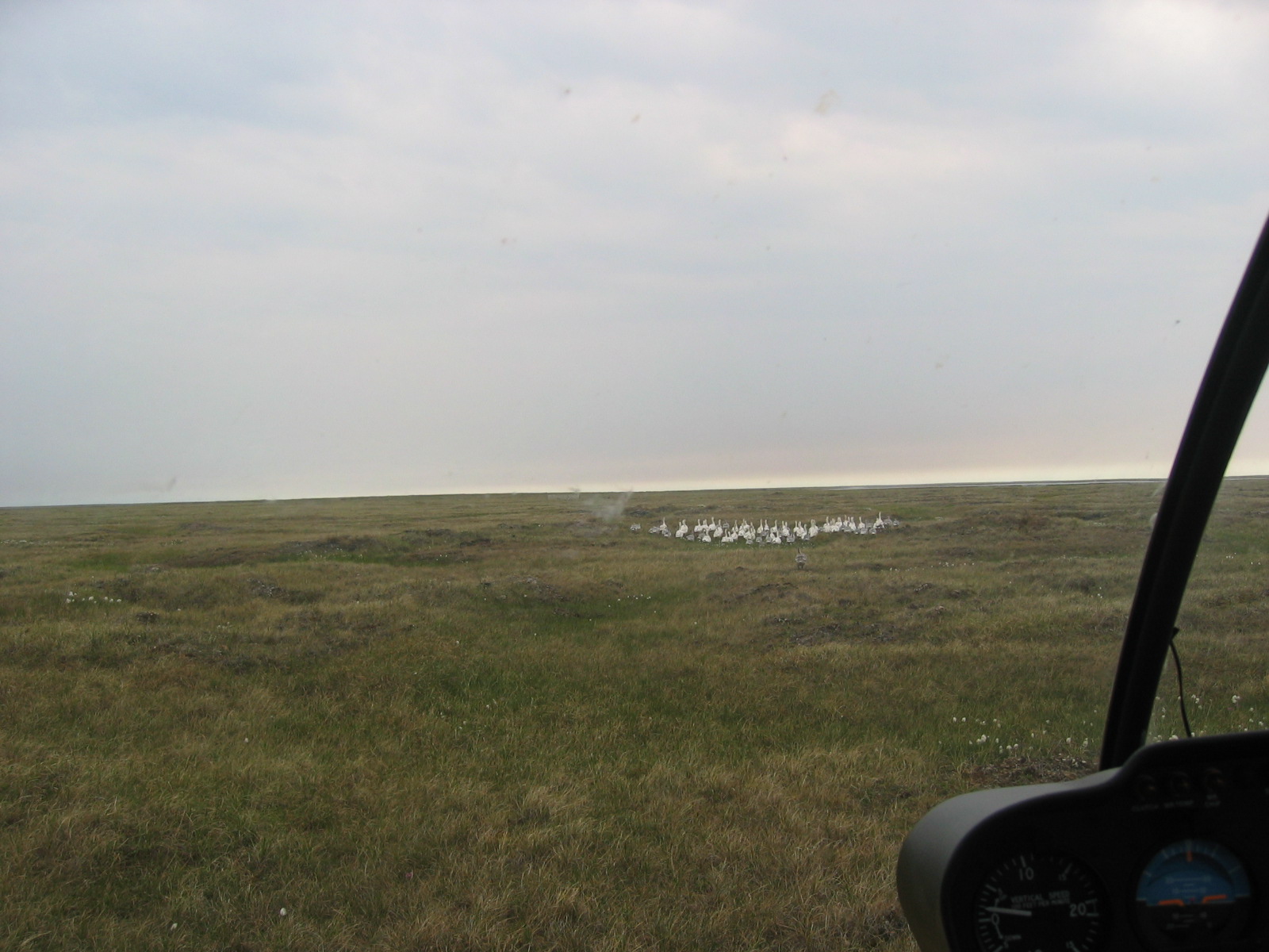 A view from the helicopter used to herd snow geese (*Chen caerulescens*) into holding pens to be banded near Barrow, Alaska.