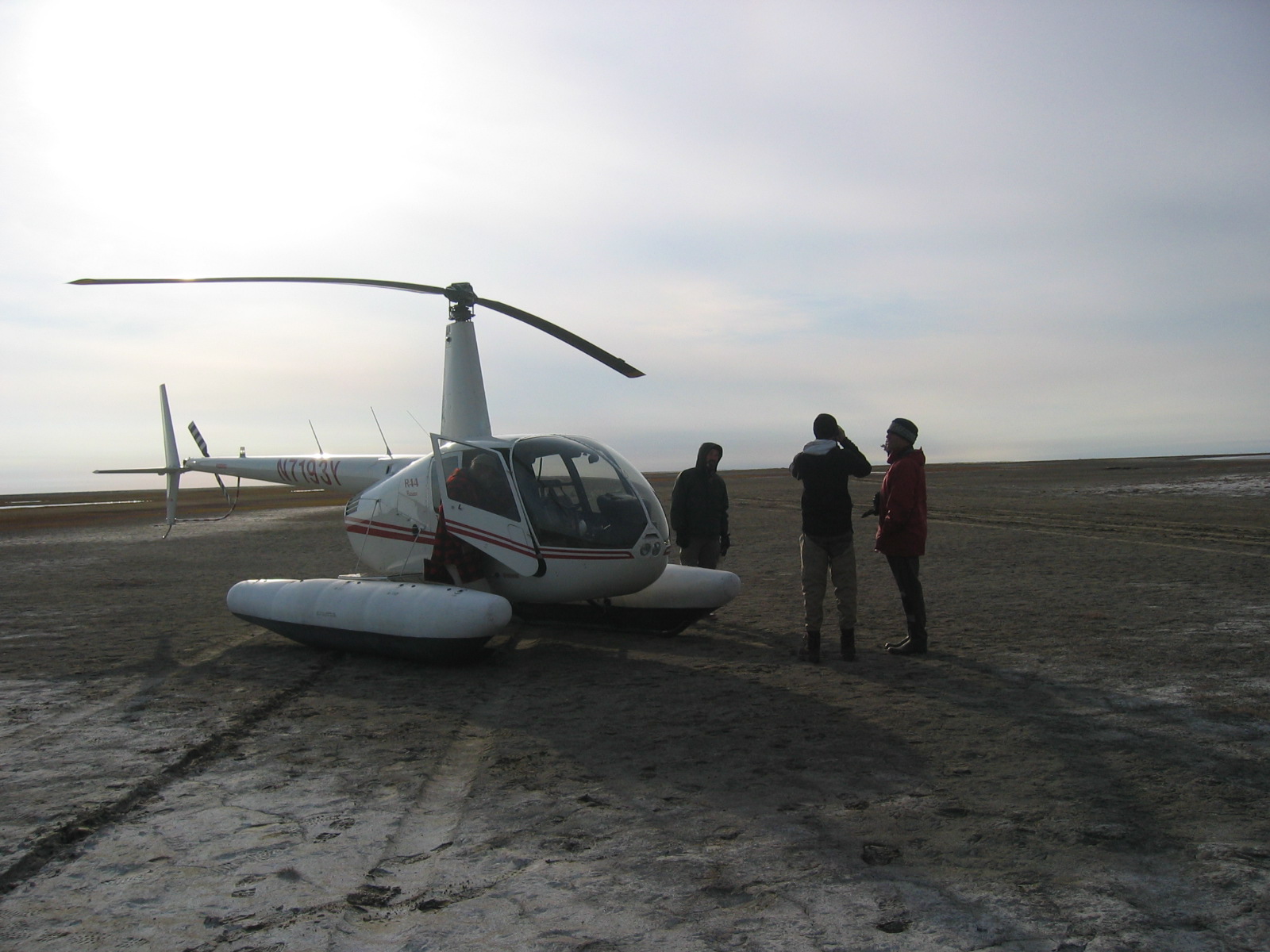 A helicopter sitting on the tundra of the Ikpikpuk delta near Barrow, AK.