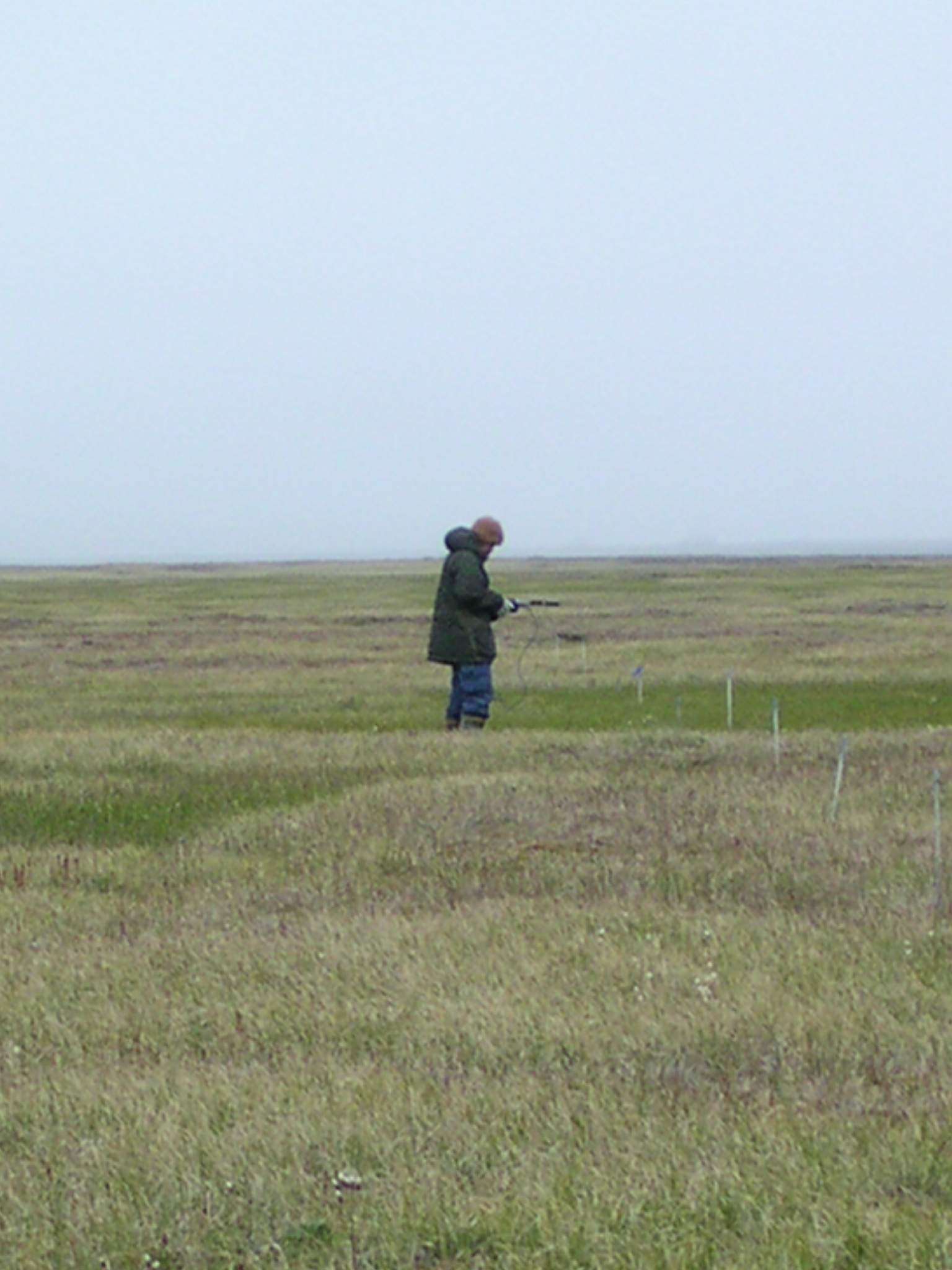 Hideki, a graduate student from Japan, taking leaf area index (LAI) measurements near Barrow, Alaska.