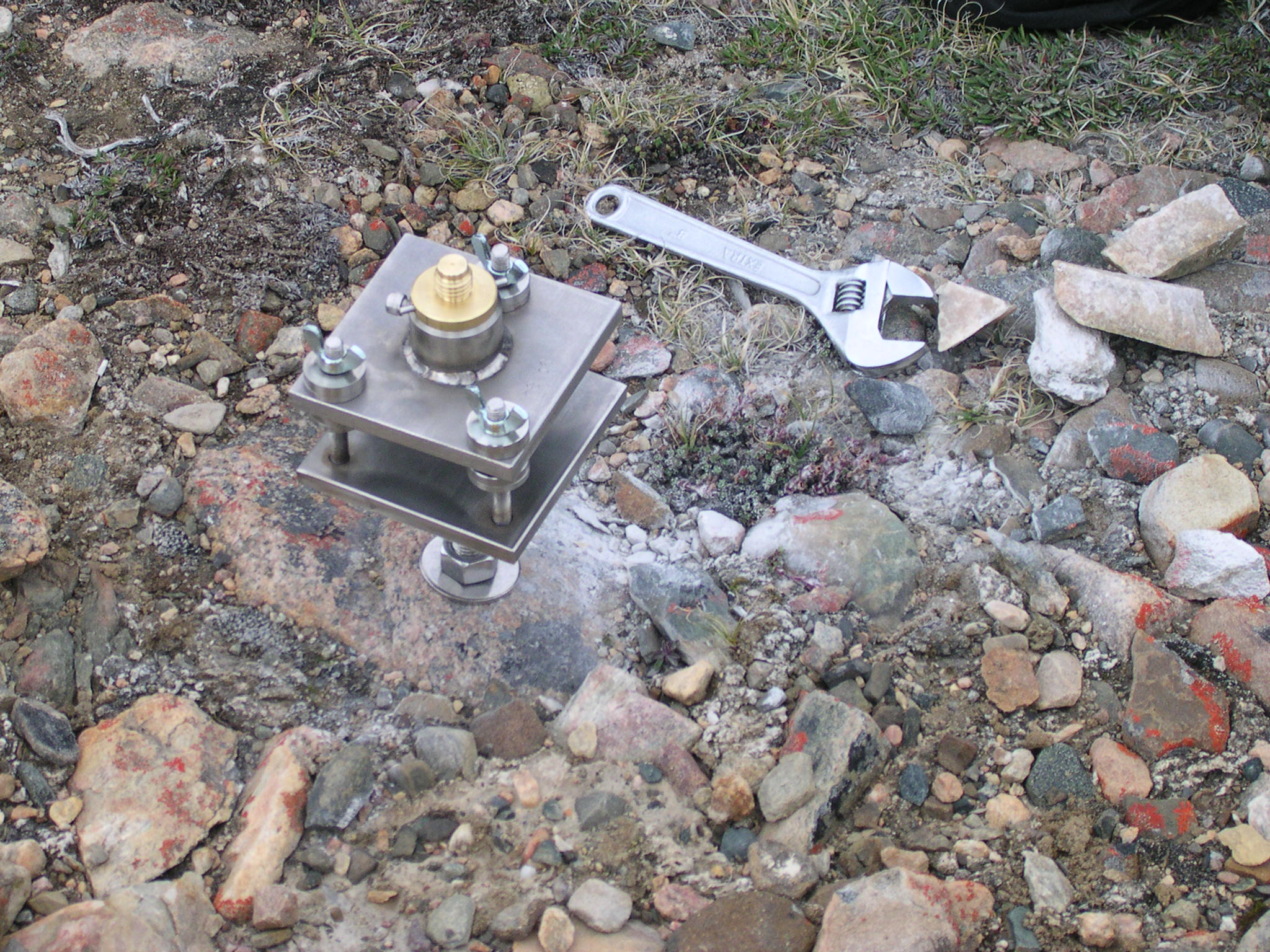 Placing an expansion bolt for a remote sensing antenna near Thule, Greenland.