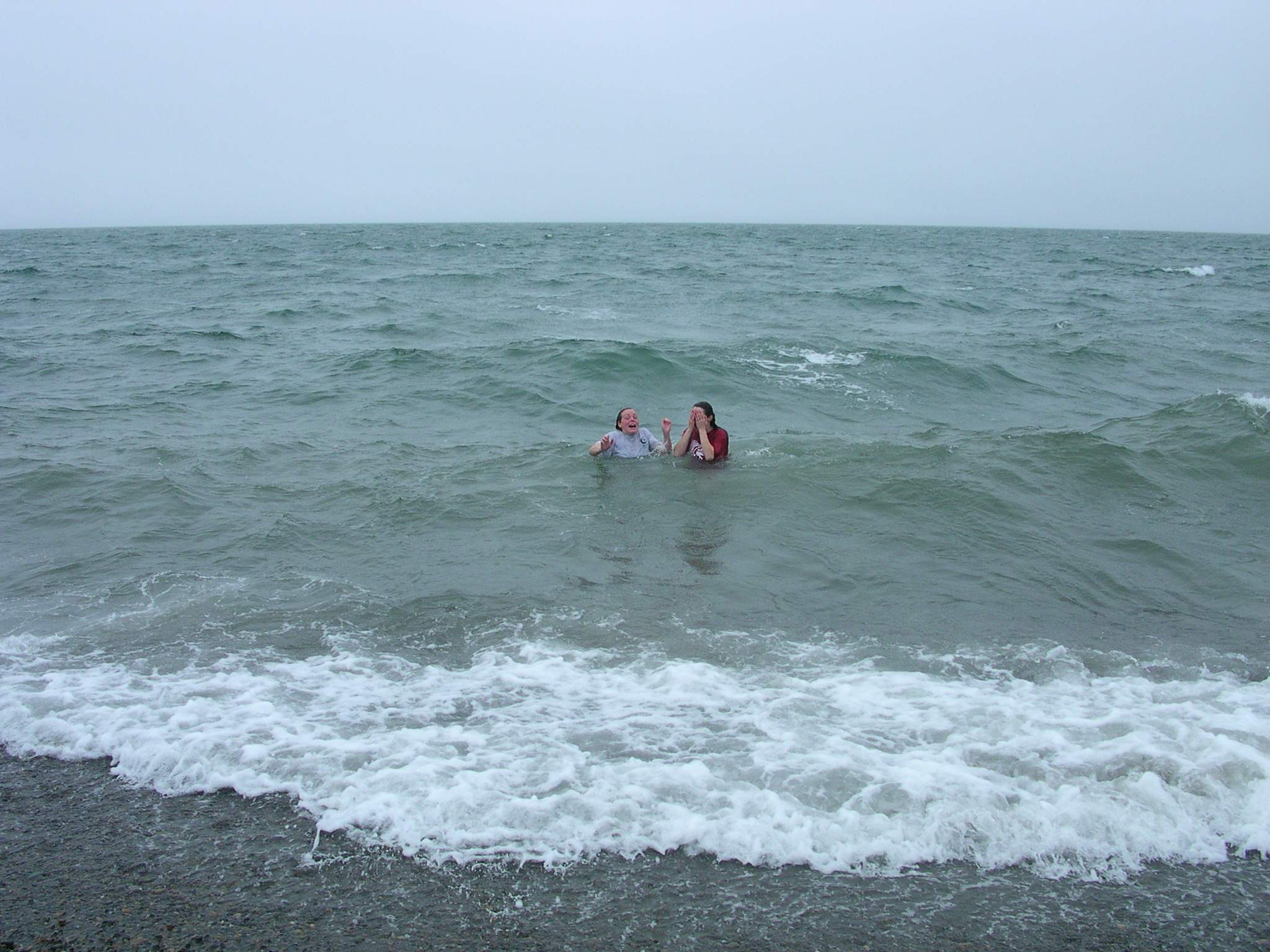 TREC teacher Misty Nikula-Ohlsen and Jenny Richards during their dip, or polar bear swim, in the Arctic Ocean.