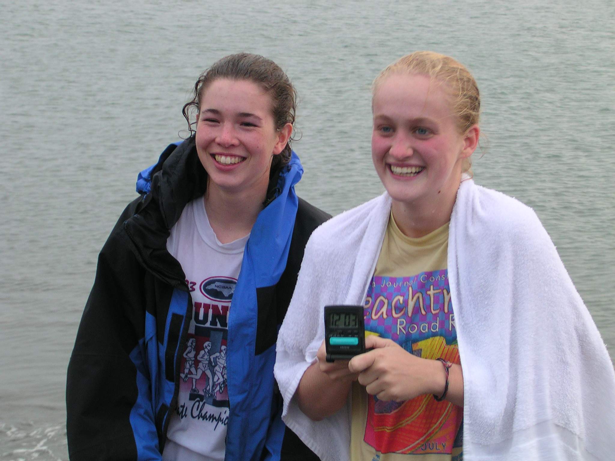 Cate and Rachel, two of TEA teacher Dora Nelson's students, after their Polar Bear swim in the Arctic ocean at Barrow, Alaska.