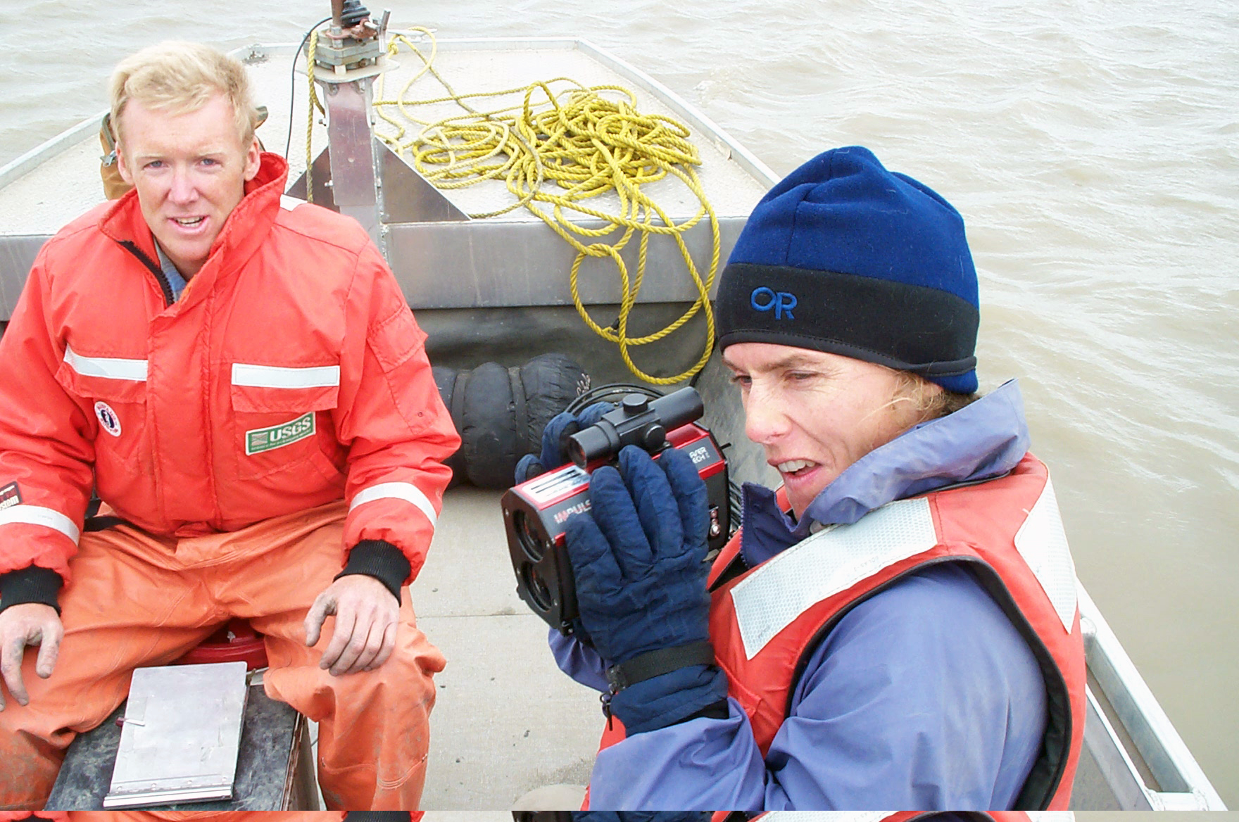 TREC teacher Amy Clapp and US Geological Survey (USGS) researcher Charlie Couvillion on the Yukon River, AK.