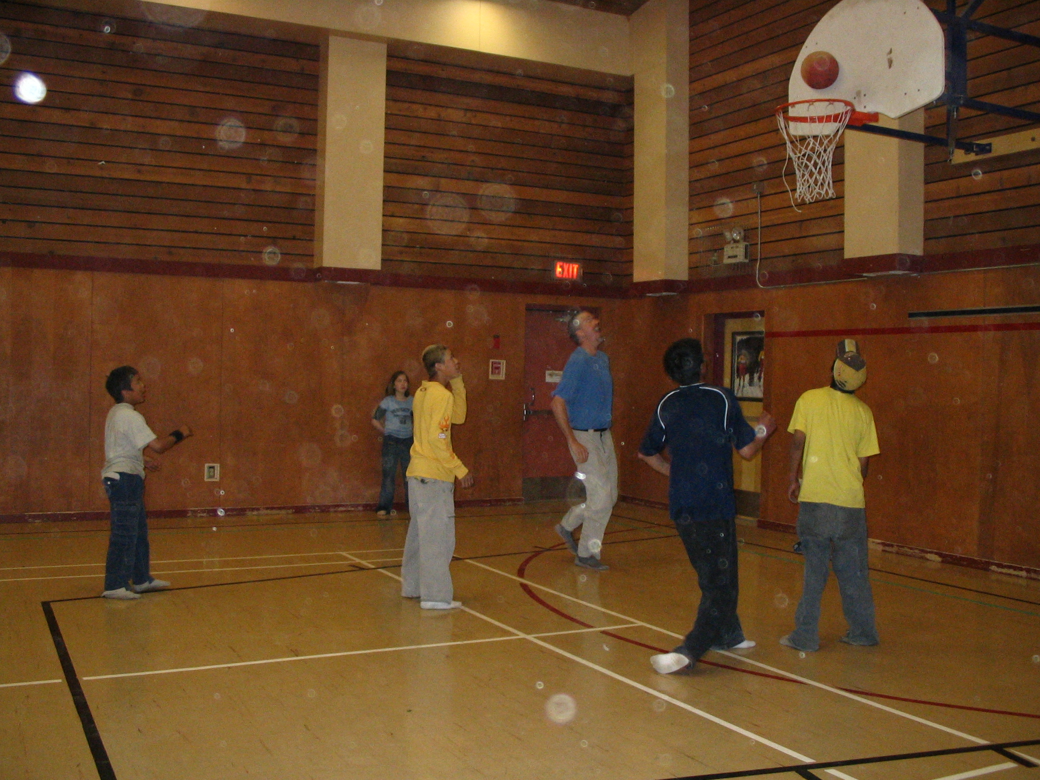 TREC researcher Max Holmes plays some basketball with he local kids of Tsiigehtchic, Canada.