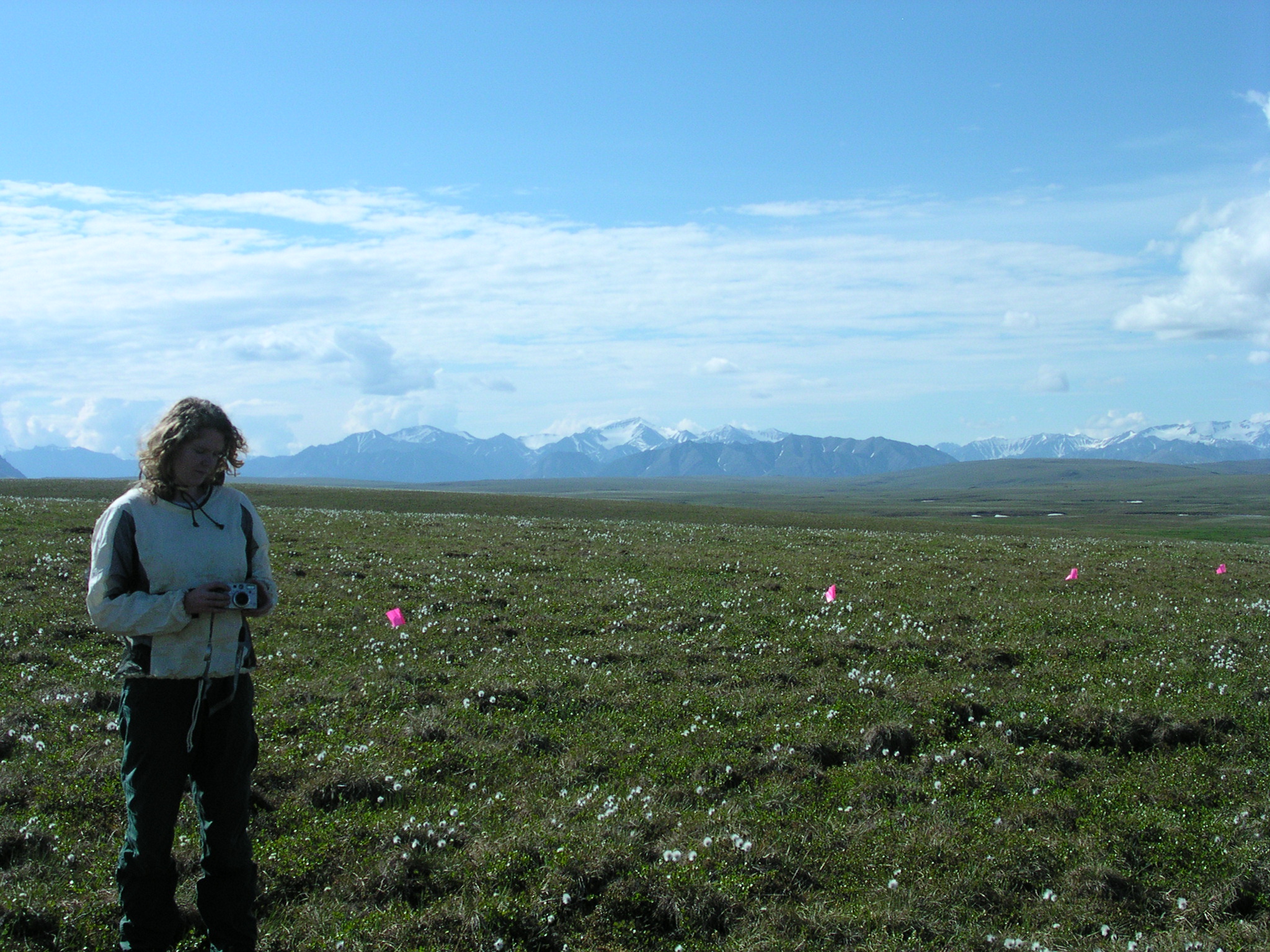 TREC Researcher Michelle Mack by some research plots located at the Long Term Ecological Research (LTER) station, Toolik Lake, AK.