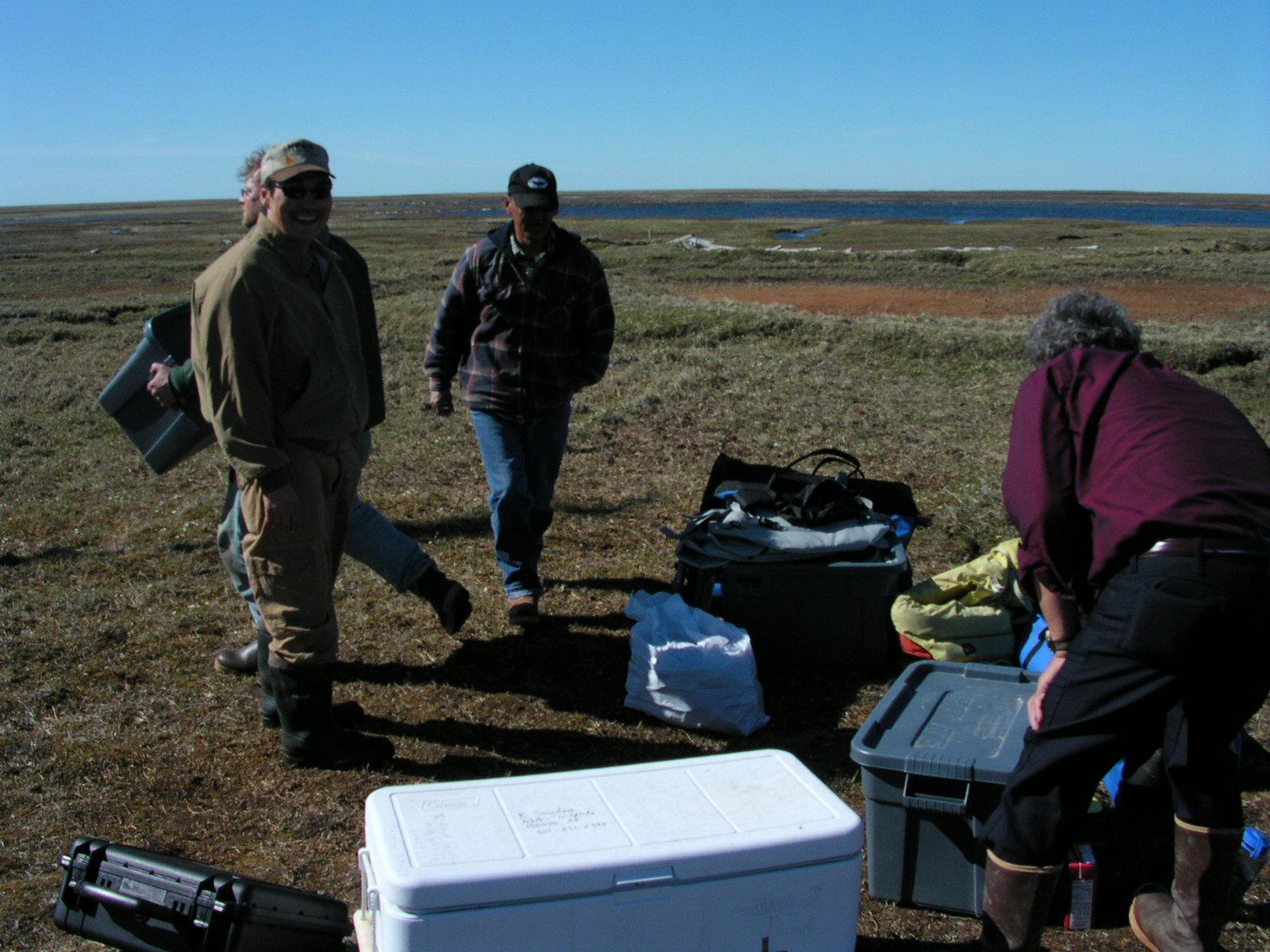 Packing up and getting ready to leave by helicopter from a the campsite on the Ikpikpuk Delta.