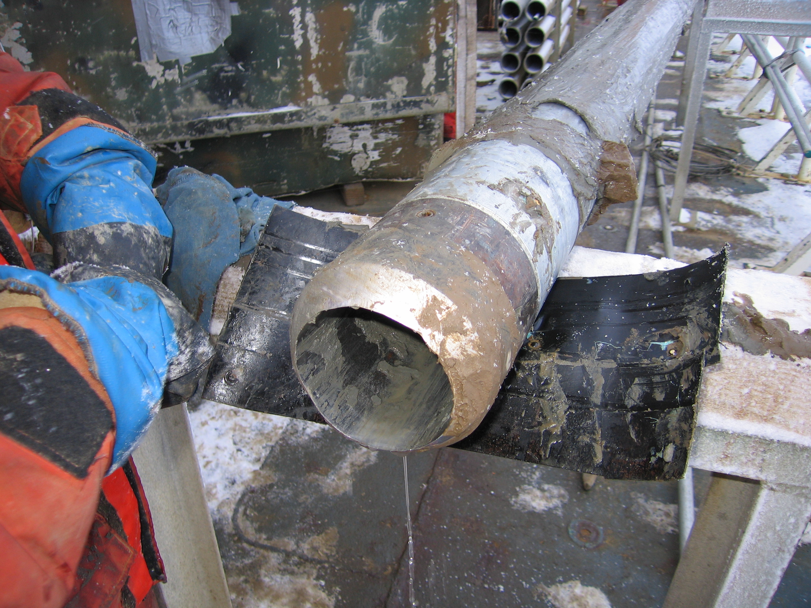 A view of a sea floor core taken with the Jumbo Piston Core (JPC) on board the USCGC Healy.
