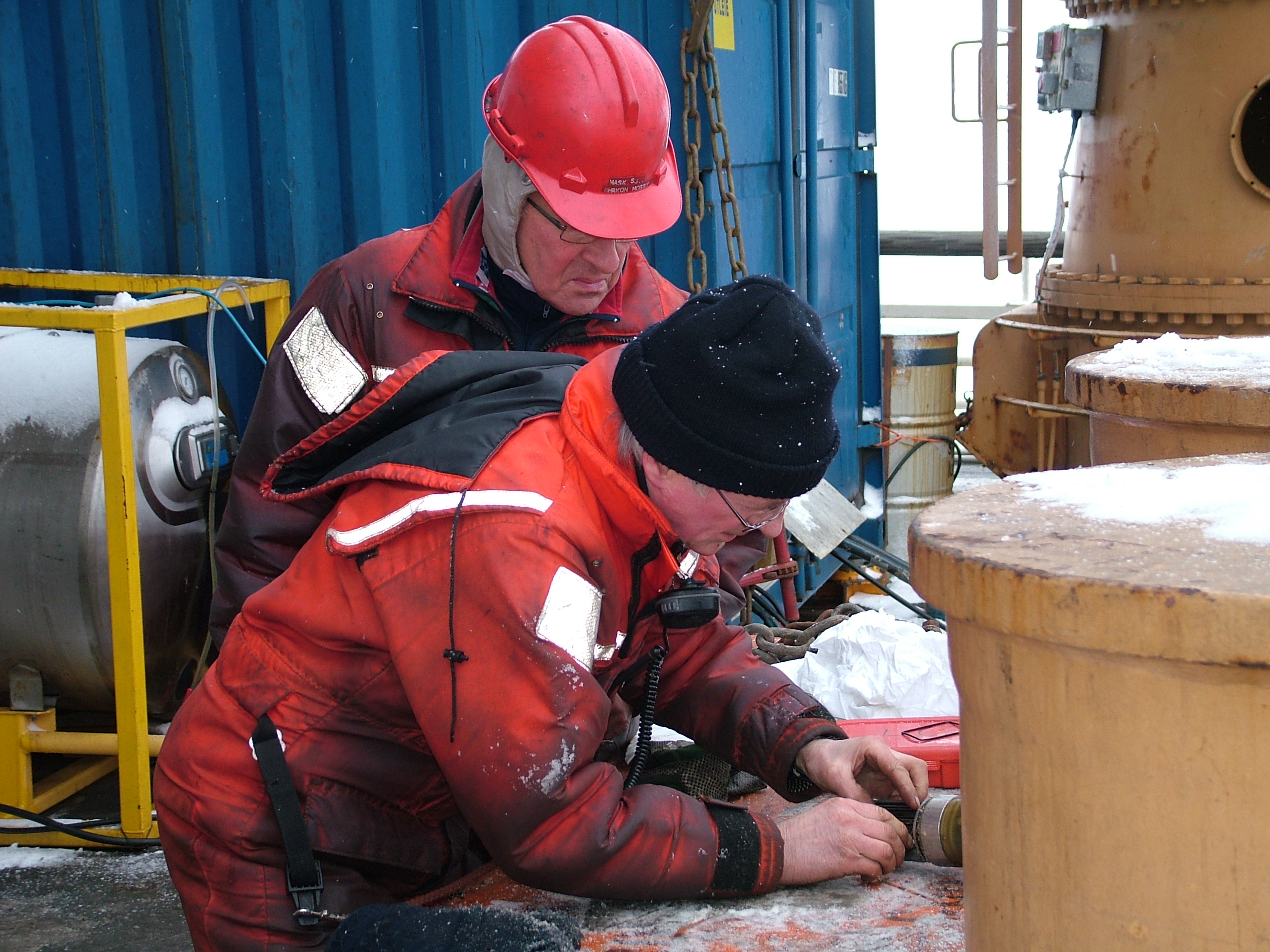 A view of some of the seismic research team, including Dennis Darby, on board the USCGC Healy.