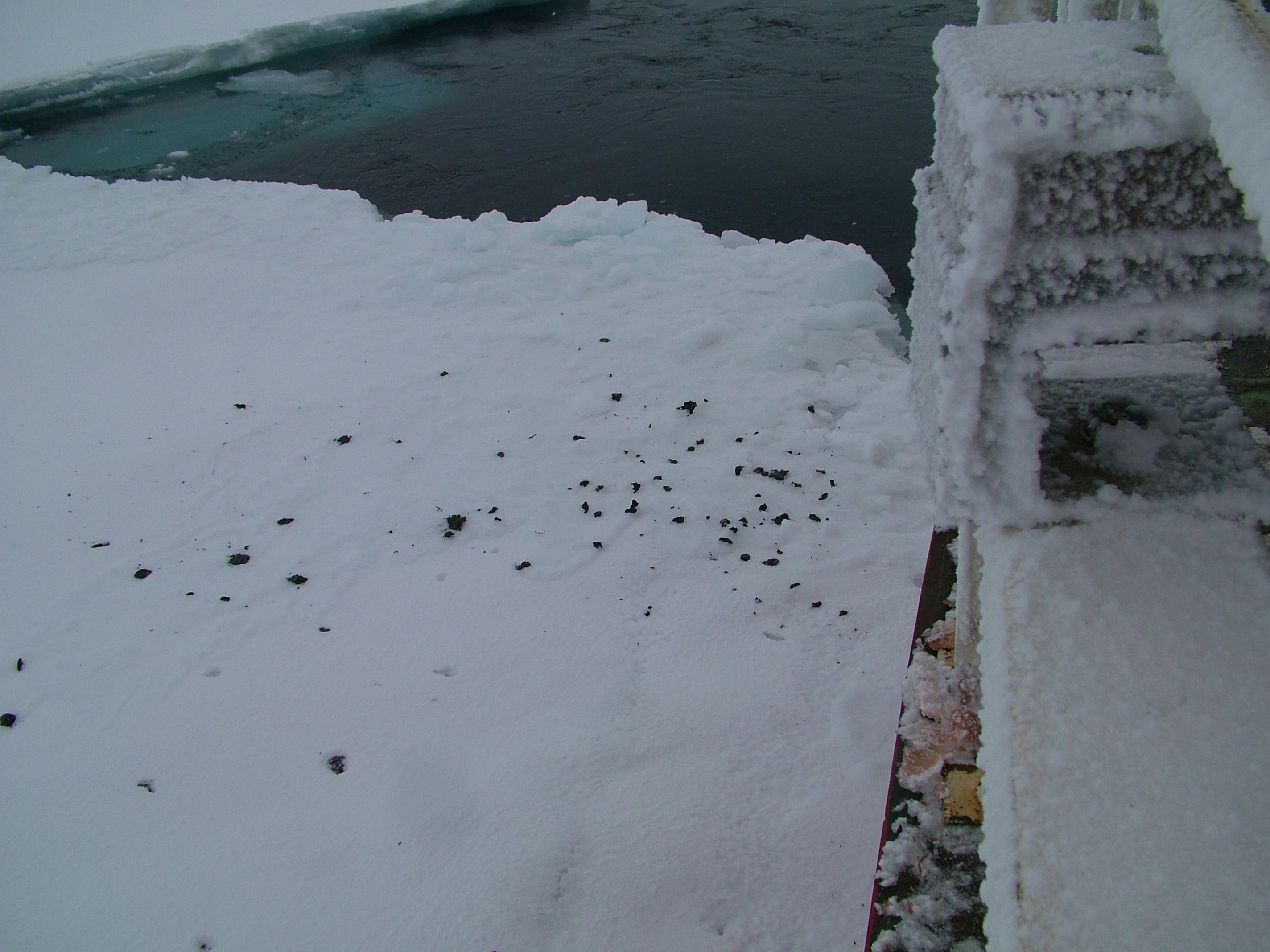 A view of the sea ice along the hull of the USCGC Healy.