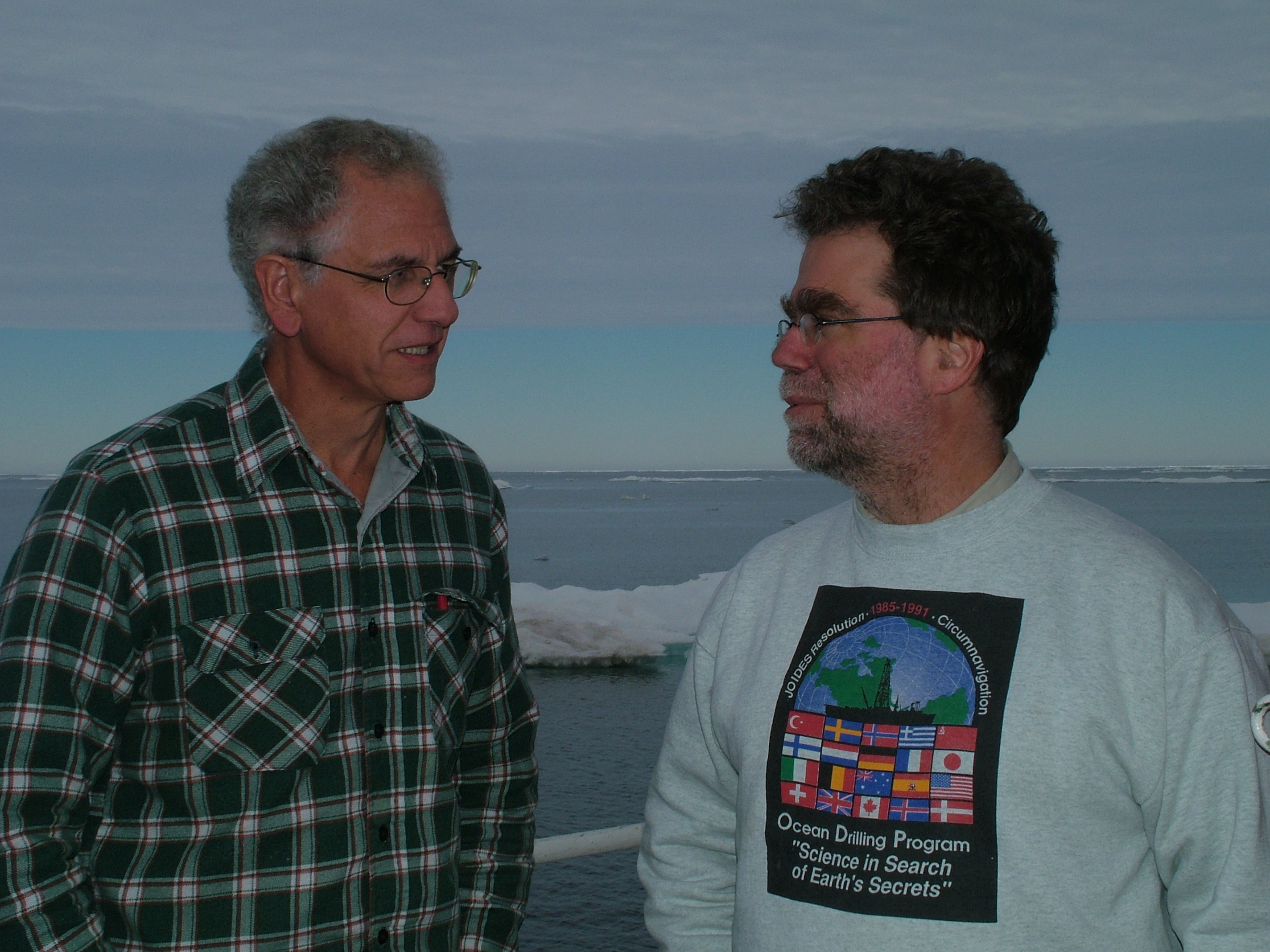 Researchers Dr. Dennis Darby of Old Dominion University and Dr. Bernard Coakley of the University of Alaska Fairbanks on board the USCGC Healy.