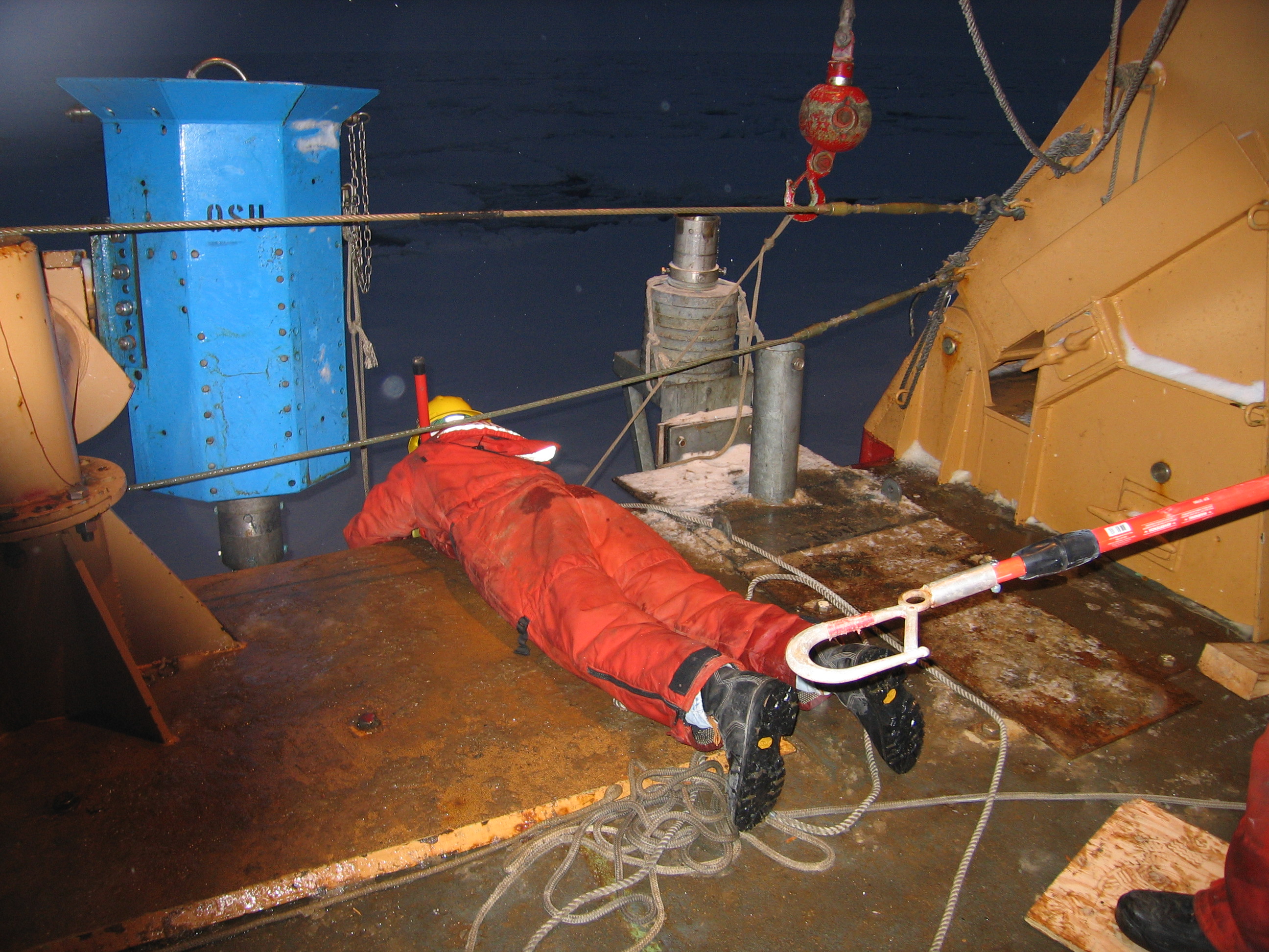 Preparing to take a sea floor core with the Jumbo Piston Core (JPC) on board the USCGC Healy.
