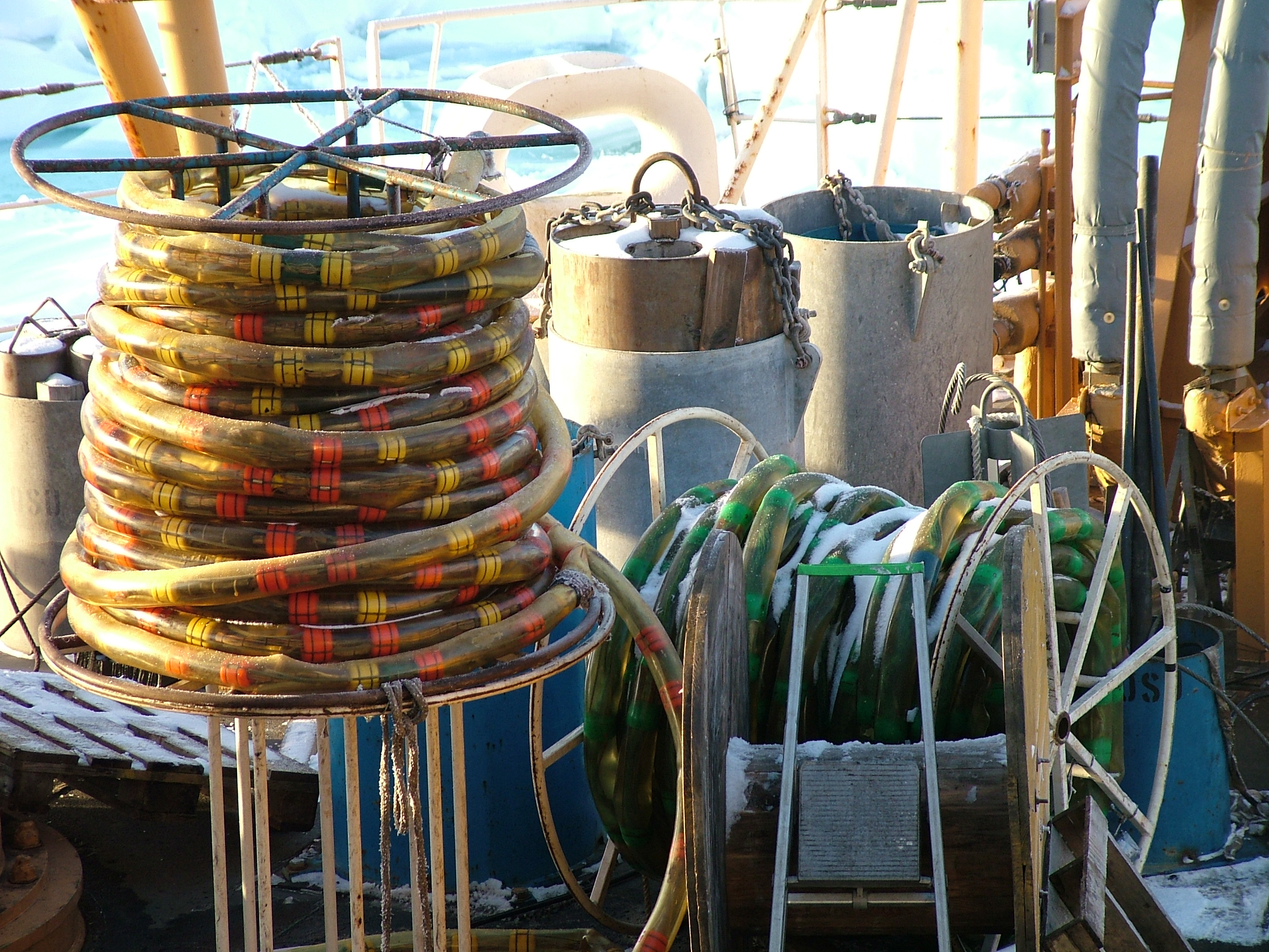 Cables that transmit data back to the ship from various sensors when deployed in the Arctic Ocean.