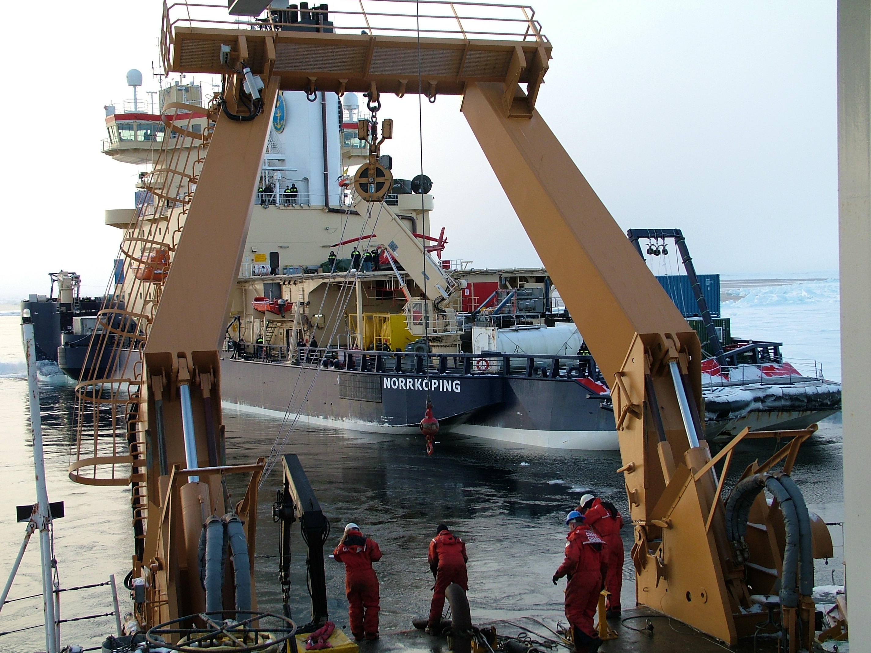 The Swedish icebreaker Oden seen from the deck of the USCGC Healy.