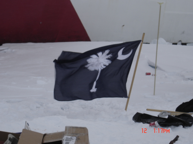 The crew of the USCGC Healy enjoy an ice liberty at the North Pole.