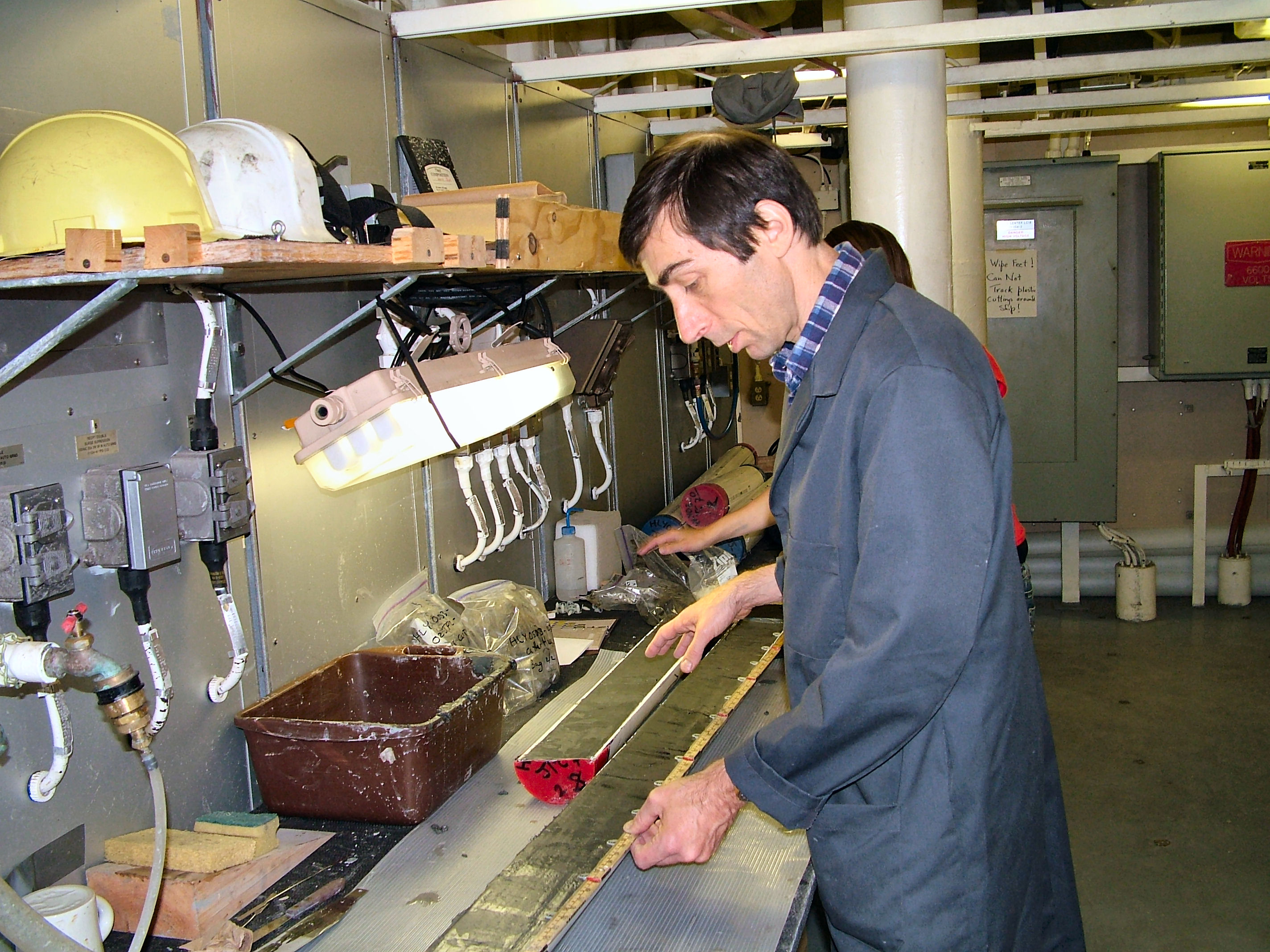 Dr. Leonid Polyak of Ohio State University with a sediment core.
