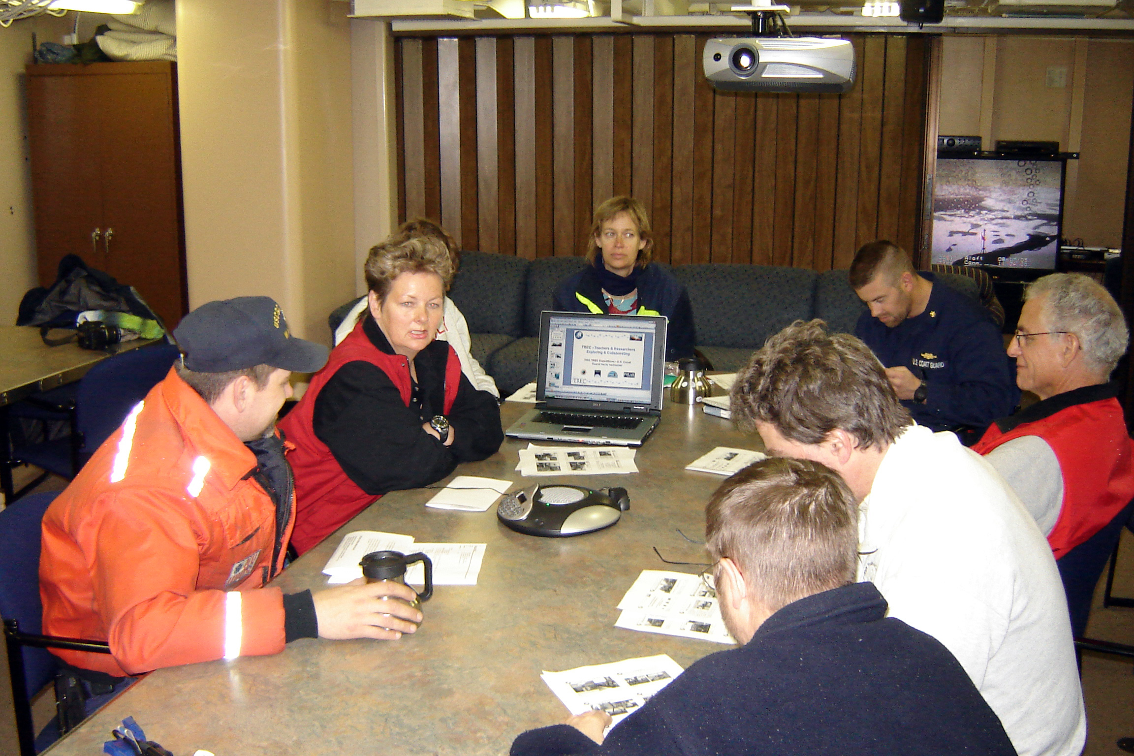 TREC teacher Ute Kaden and some of the USCGC Healy's crew and research team during a webinar (online seminar) with various schools and students in the US and New Zealand.